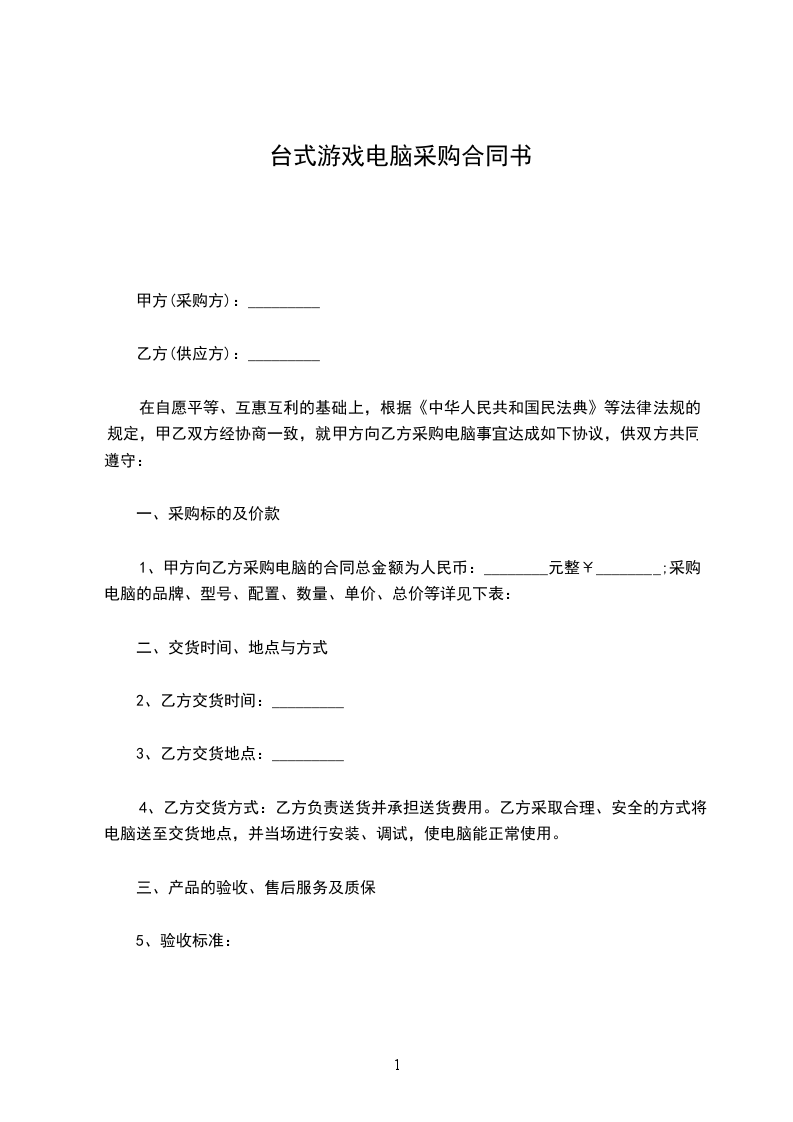 今甲方向乙方采购一批电脑,为友好合作,特定如下合同。