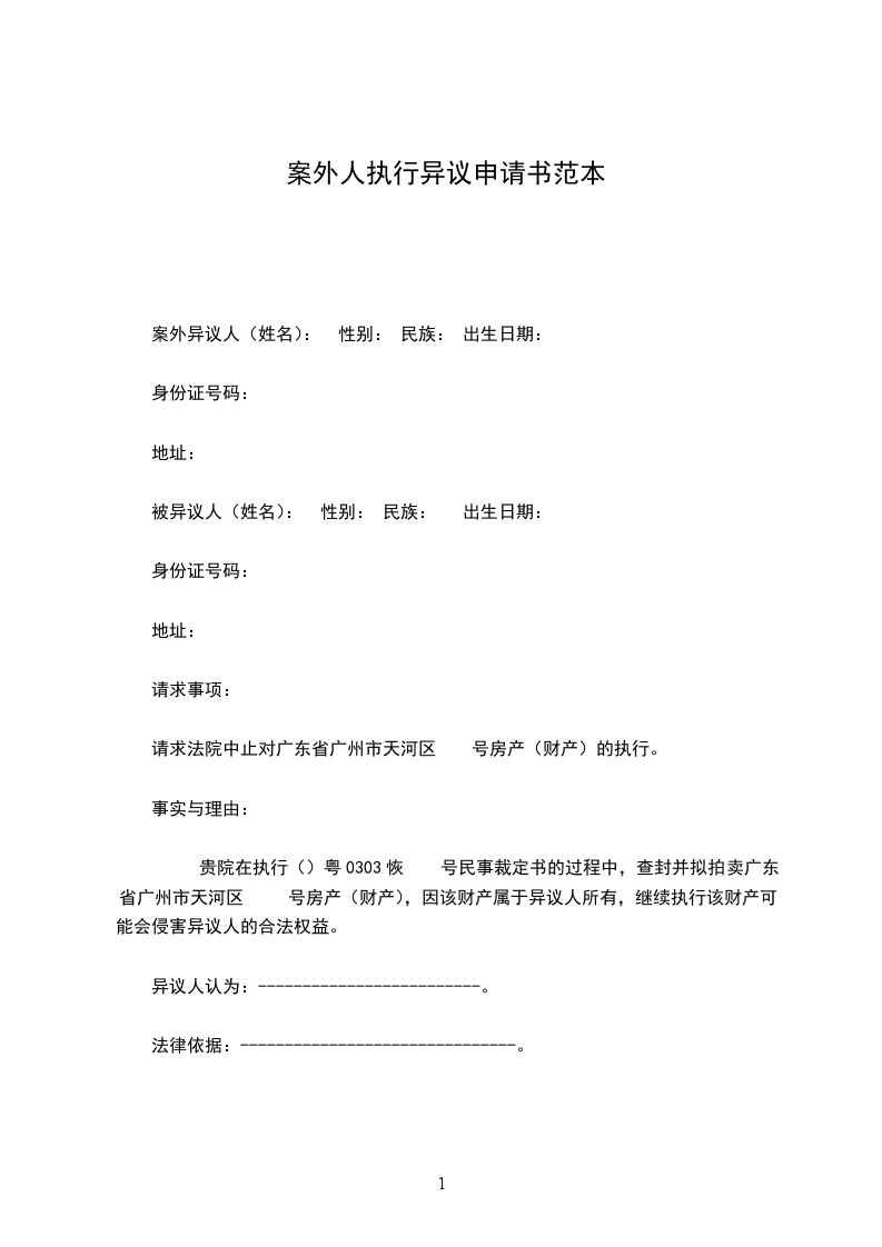 为维护异议申请人的合法权益,现根据法律相关规定提出书面异议,请求贵院中止对该财产的执行。