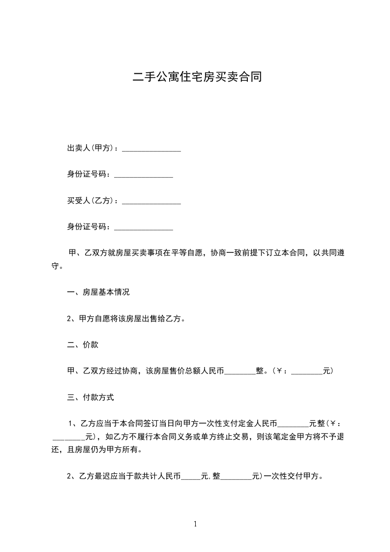 1、甲方应于乙方付清全部房款后的___日内,将该房屋交付乙方。交付方式为给付该房屋门钥匙。