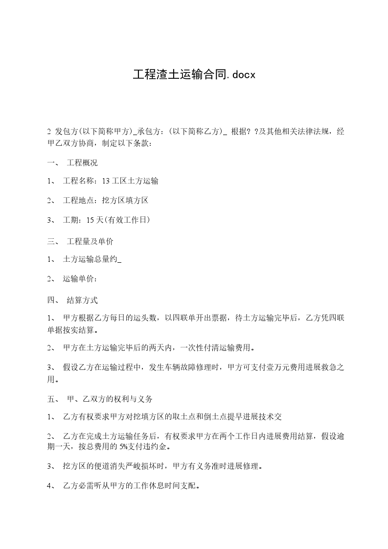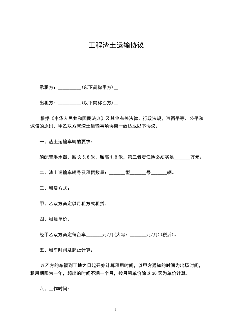 根据《中华人民共和国民法典》及其他有关法律、行政法规,遵循平等、公平和诚信的原则,甲乙双方就渣土运输事项协商一致达成以下协议: