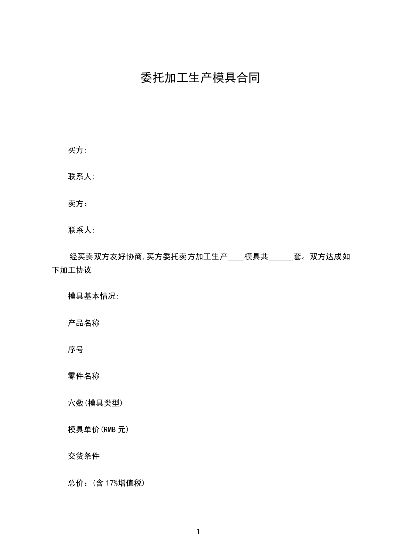 四、如加工结束,模具回收,回料供应商自行处理。
