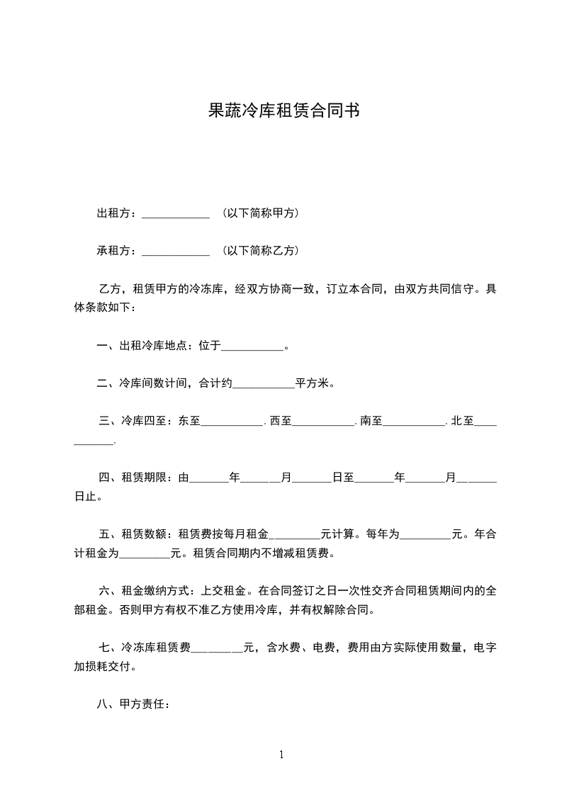 乙方,租赁甲方的冷冻库,经双方协商一致,订立本合同,由双方共同信守。具体条款如下: