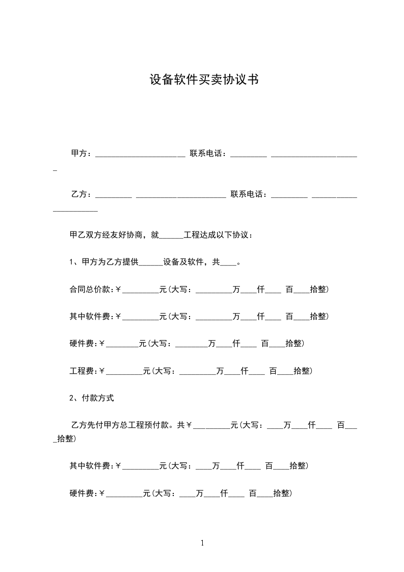 1、甲方为乙方提供______设备及软件,共____。