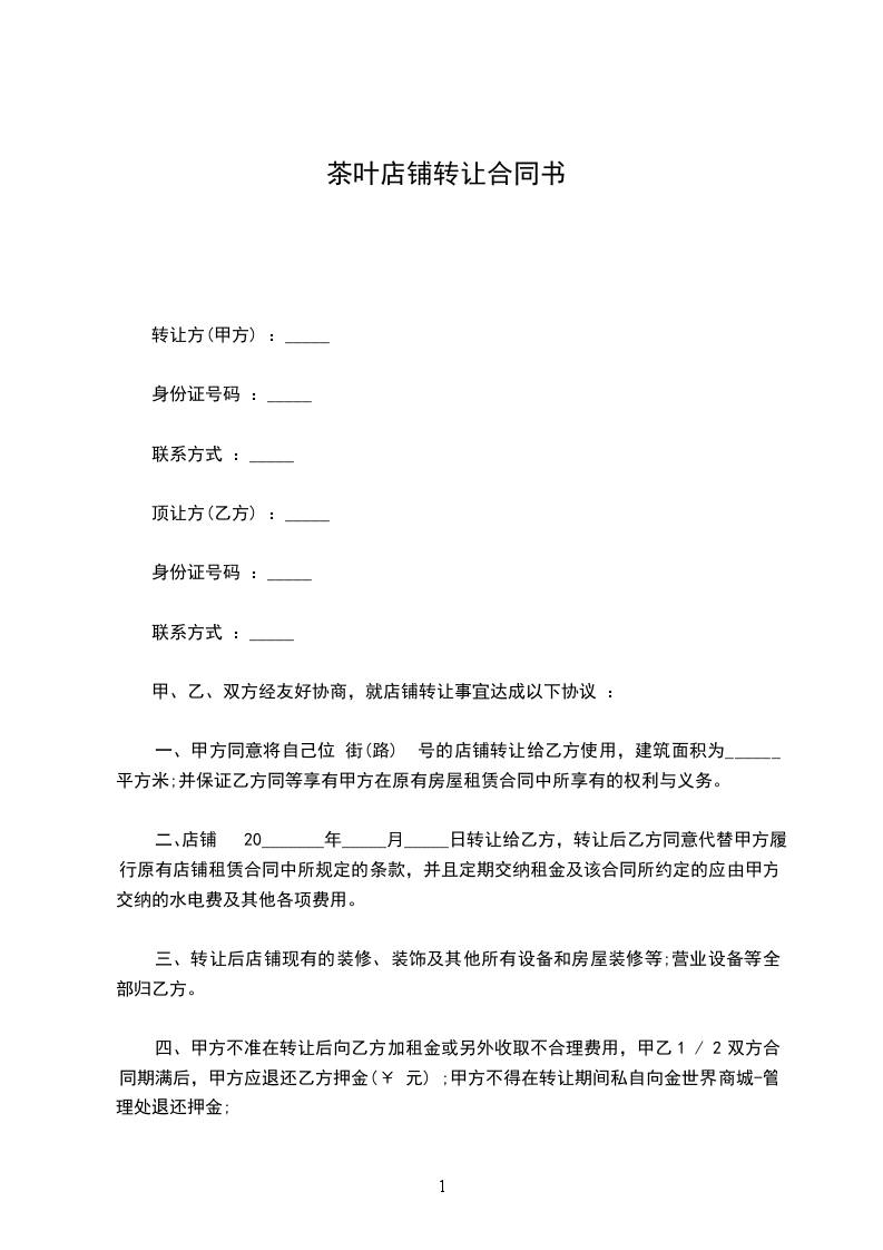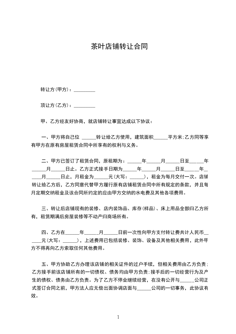 第一条 甲方于________年____月____日前将位于________________店铺(__层)转让给乙方使用。