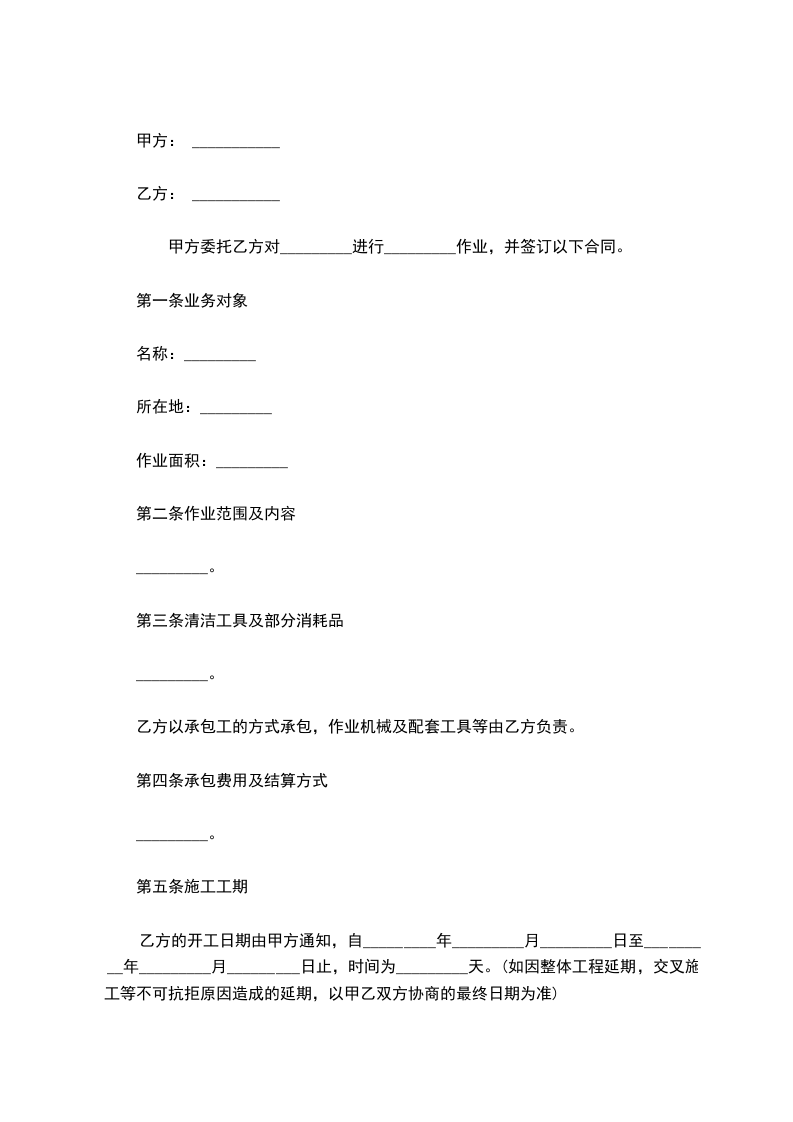 甲方委托乙方对_________进行_________作业,并签订以下合同。