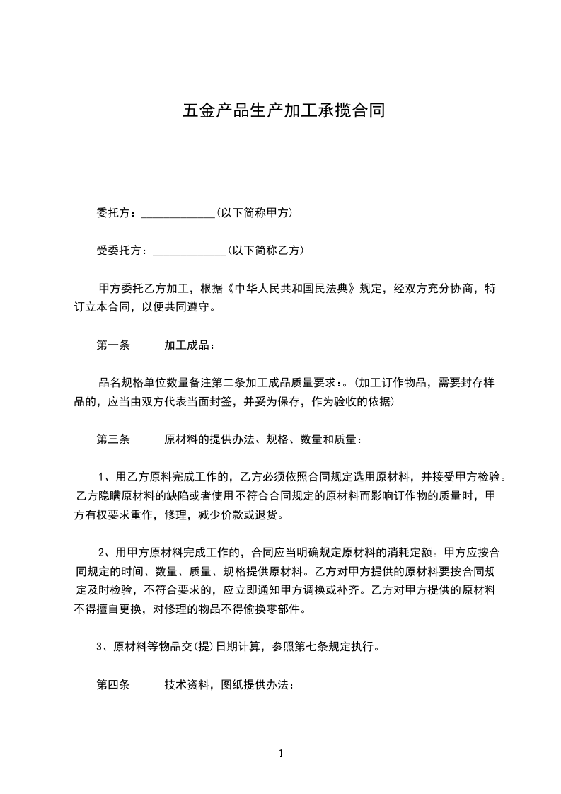 甲方委托乙方加工,根据《中华人民共和国民法典》规定,经双方充分协商,特订立本合同,以便共同遵守。
