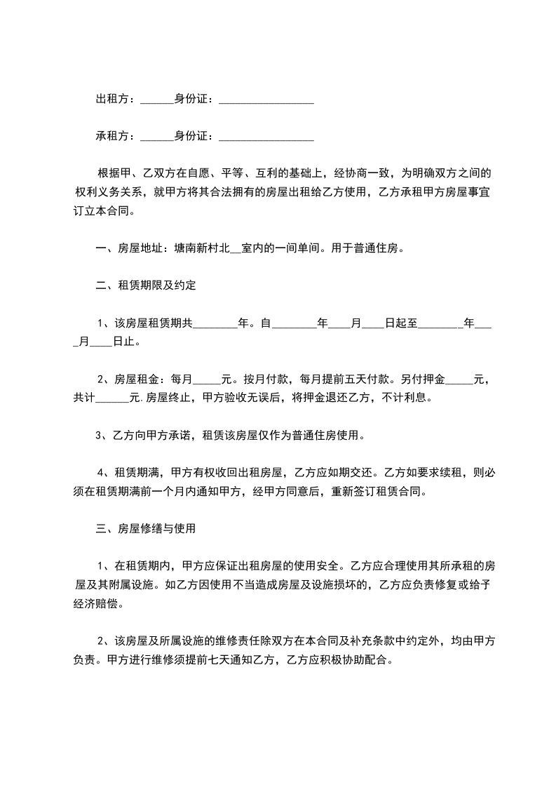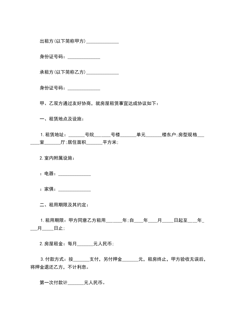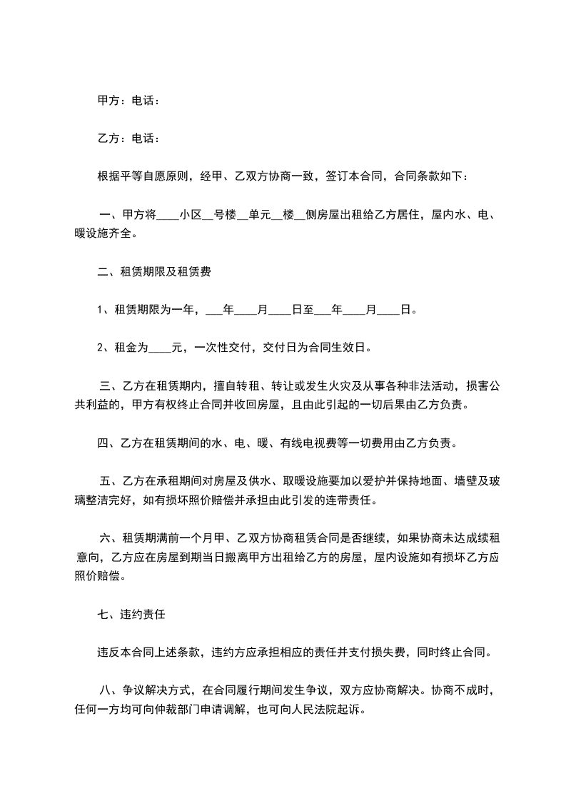 甲方将_________市__________路_______小区___楼_______住宅用房(以下简称该房屋)出租给乙方,并达成如下协议。