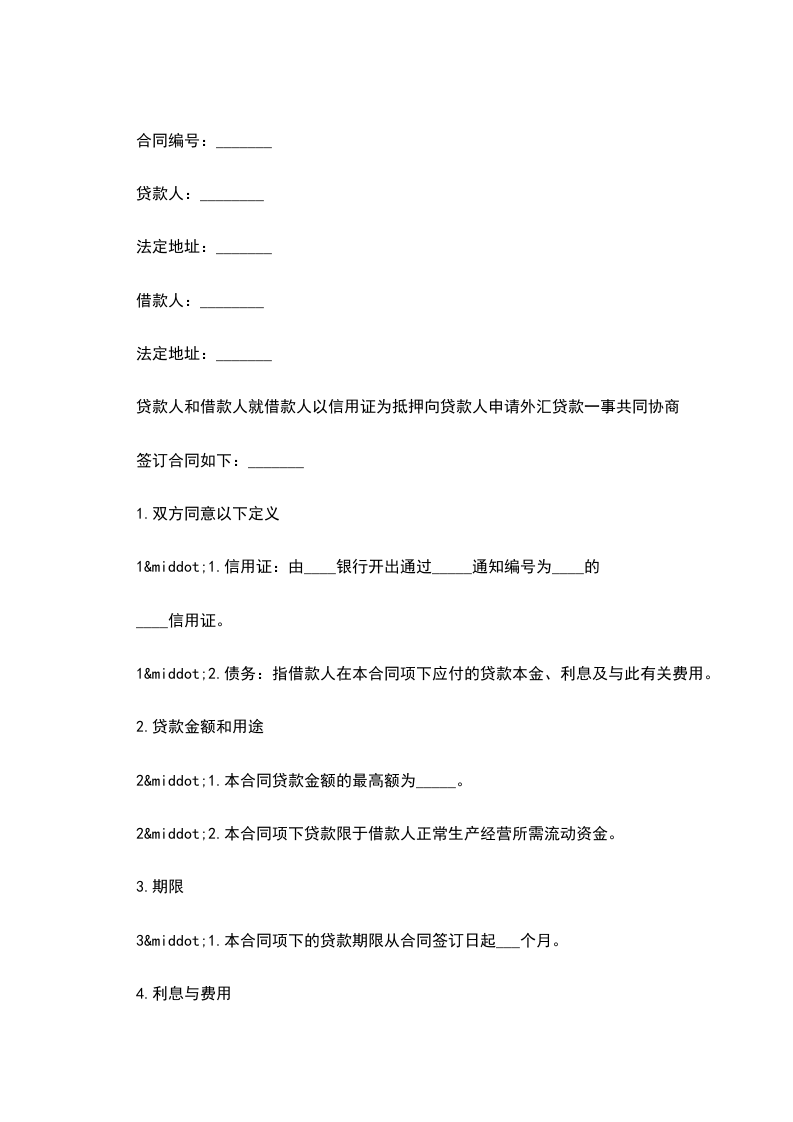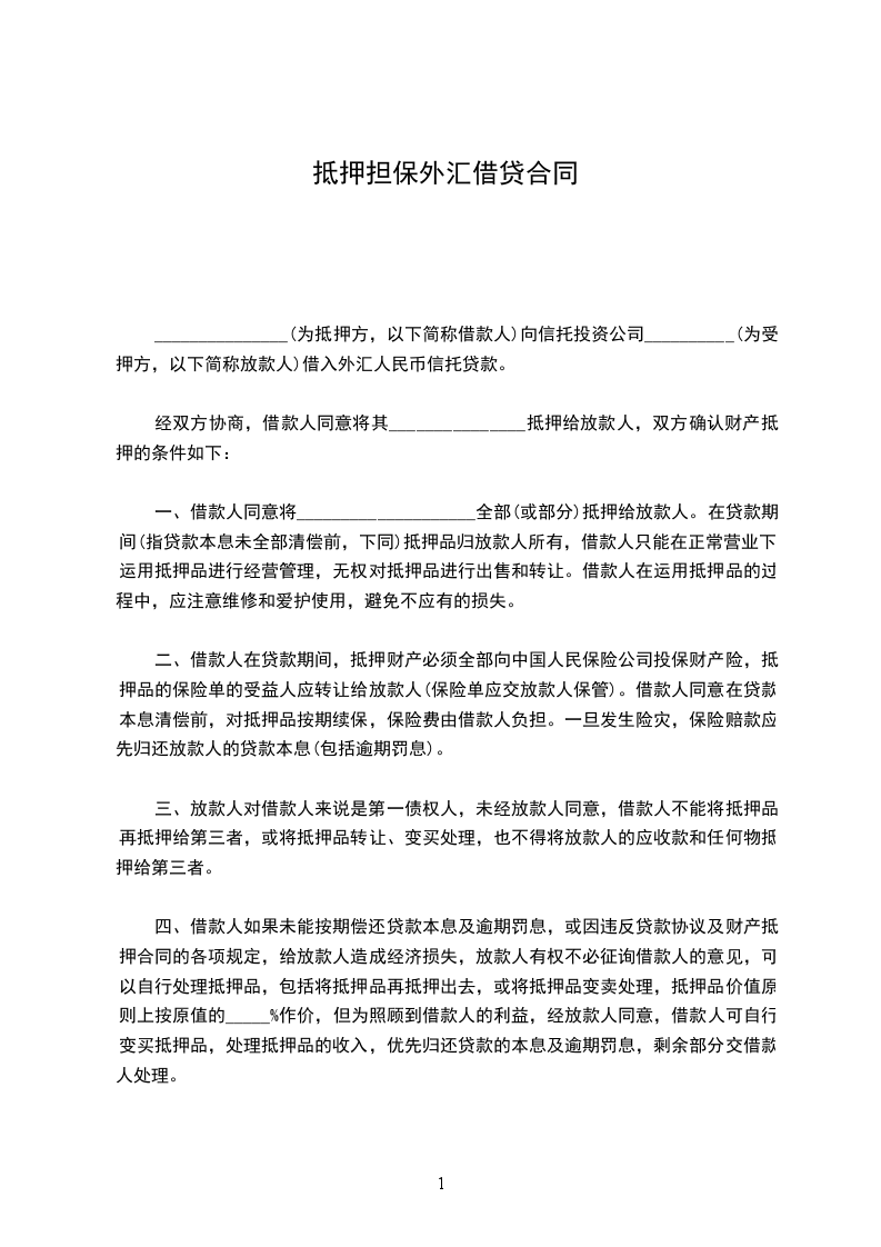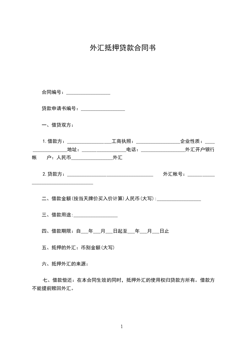 甲方根据__________的需要,向乙方申请外汇抵押人民币贷款。乙方经审查,同意向甲方提供外汇抵押人民币贷款。甲、乙双方遵照国家有关法律规定,经协商一致,按以下条款订立本合同。