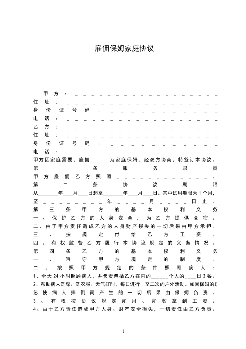 根据《中华人民共和国民法典》等有关法律、法规的规定,甲乙双方本着平等、自愿的原则就乙方为甲方提供保姆服务有关事宜,达成如下协议: