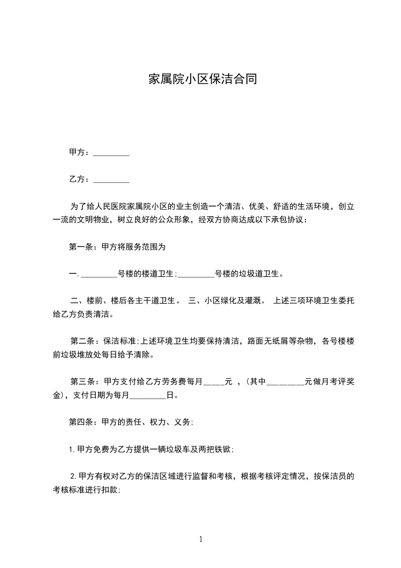 为了给人民医院家属院小区的业主创造一个清洁、优美、舒适的生活环境,创立一流的文明物业,树立良好的公众形象,经双方协商达成以下承包协议: