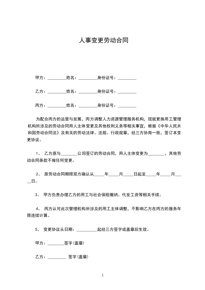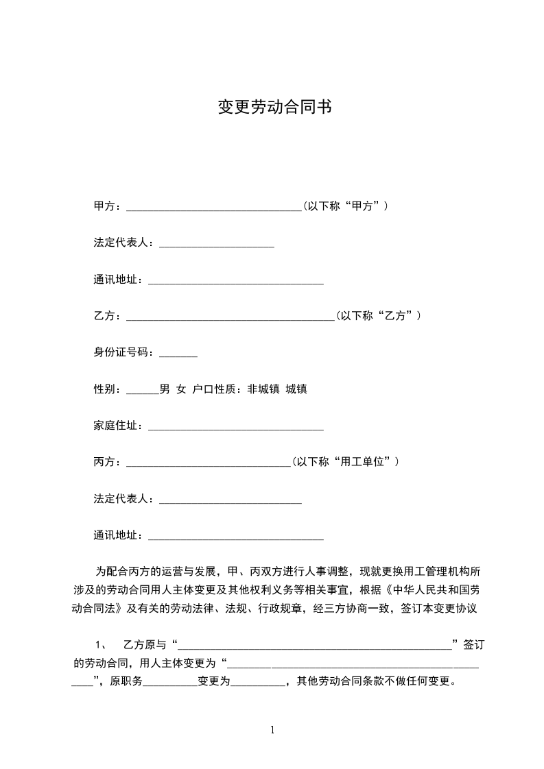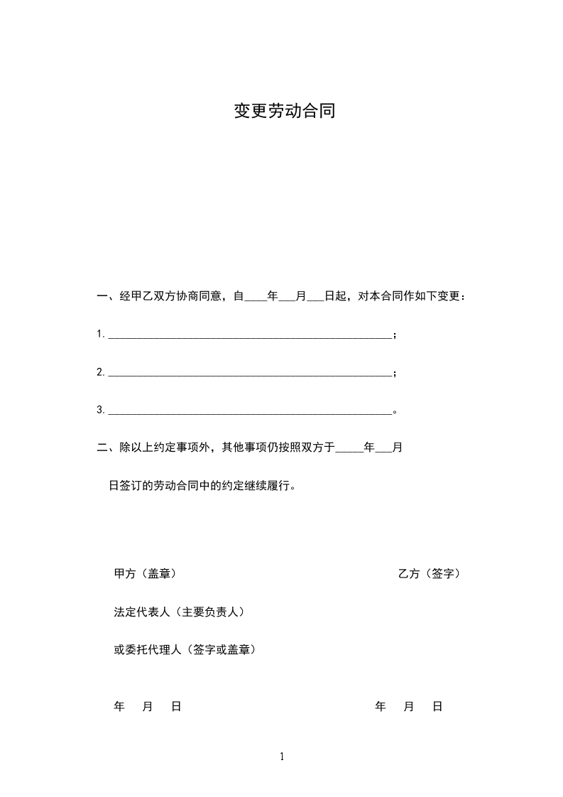 一、经甲乙双方协商同意,自 年 月 日起,对本合同作如下变更: