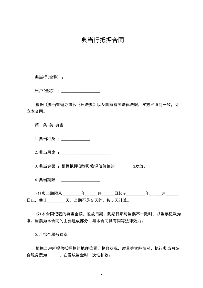 本合同项下的当金利率为____月利率________%,由甲方按月足额支付给乙方;典当综合费用为每月________%,由甲方按月足额预先支付给乙方。