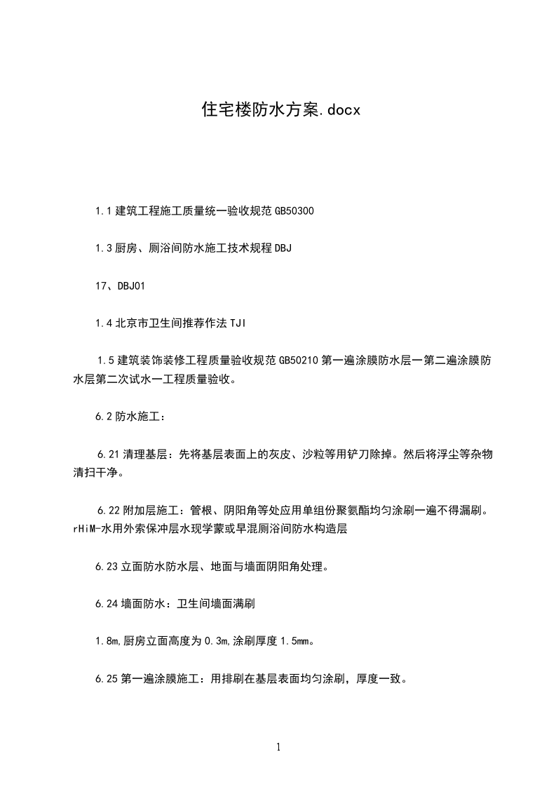 3、工程内容:根据公司_________工程施工联系单和设计变更通知单要求,厨卫间防水工程采用聚合物水泥基防水涂膜(1.5cm厚),屋面防水工程采用“_________”聚氨酯防水涂膜(找平层上作基层处理)。