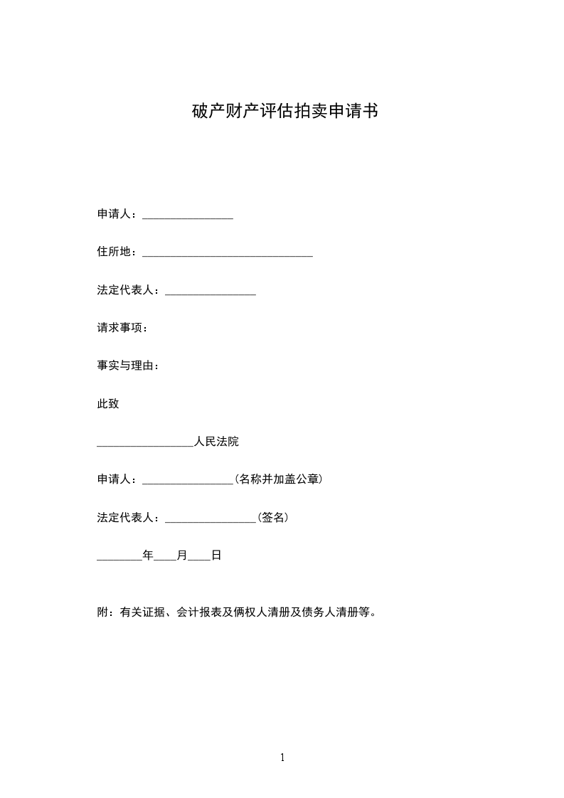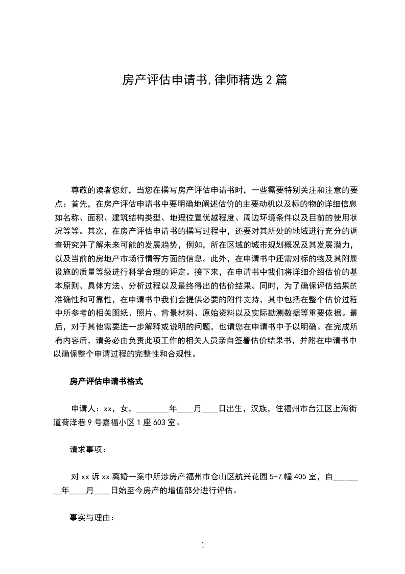 评 估 申 请 书