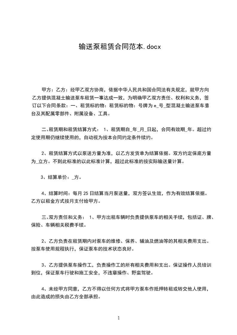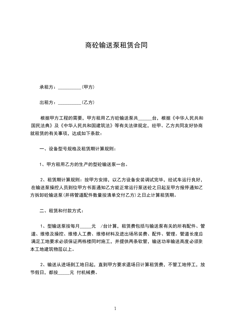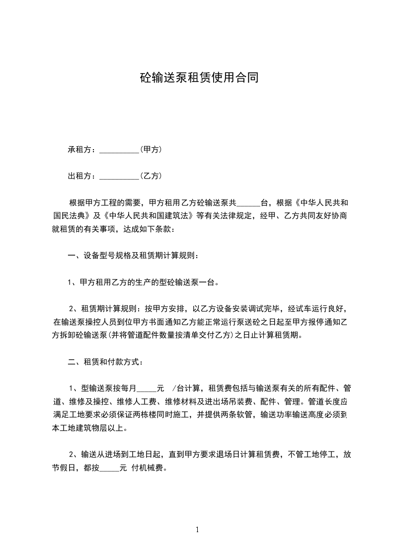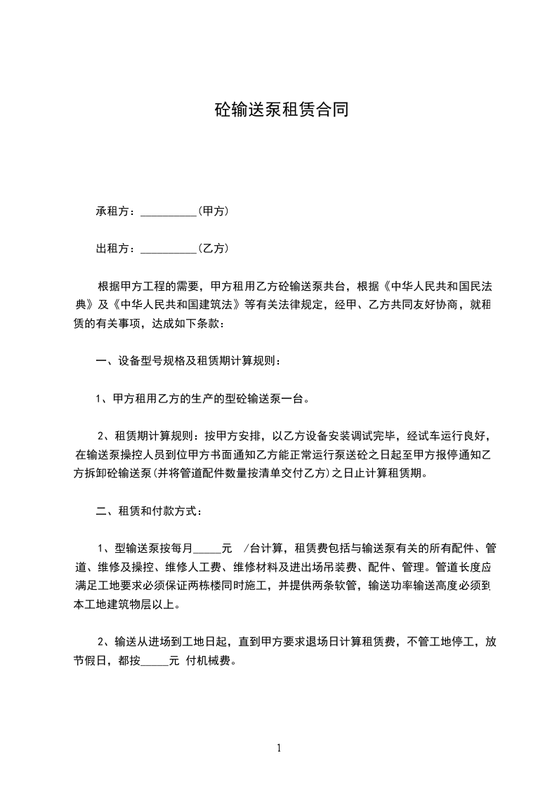 根据甲方工程的需要,甲方租用乙方砼输送泵共台,根据《中华人民共和国民法典》及《中华人民共和国建筑法》等有关法律规定,经甲、乙方共同友好协商,就租赁的有关事项,达成如下条款:
