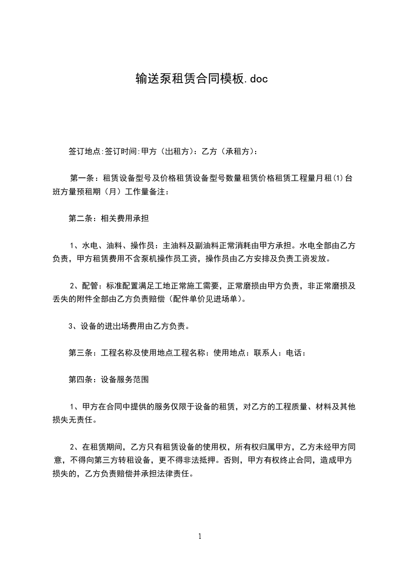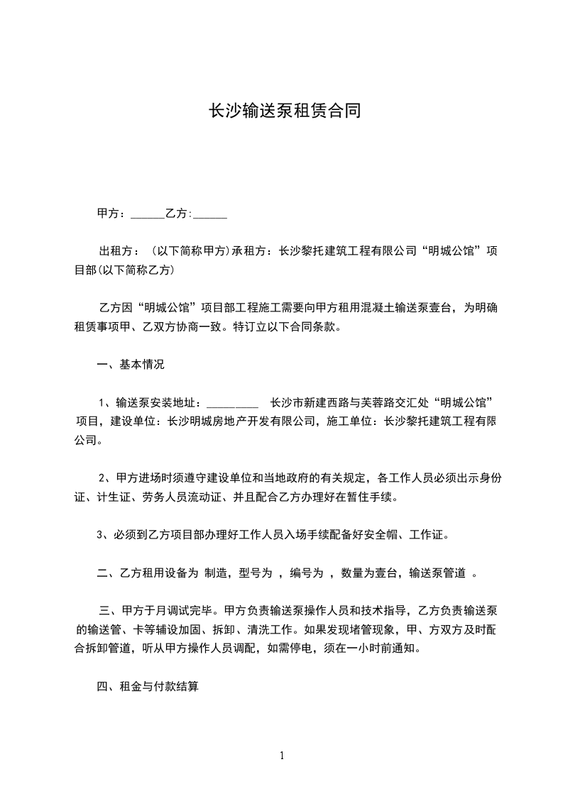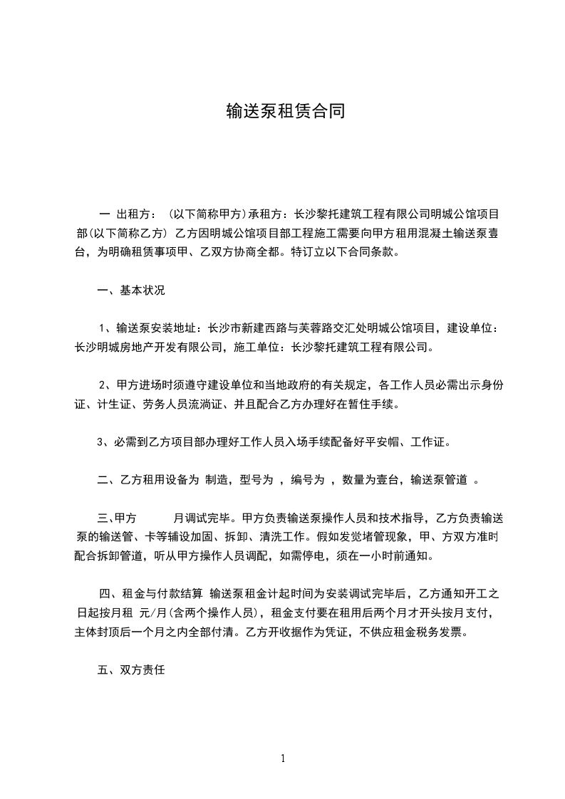 1、型输送泵按每月_____元 /台计算,租赁费包括与输送泵有关的所有配件、管道、维修及操控、维修人工费、维修材料及进出场吊装费、配件、管理。管道长度应满足工地要求必须保证两栋楼同时施工,并提供两条软管,输送功率输送高度必须到本工地建筑物层以上。