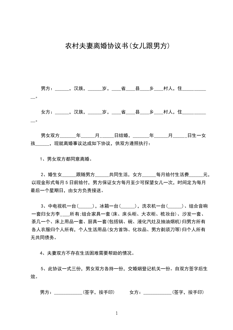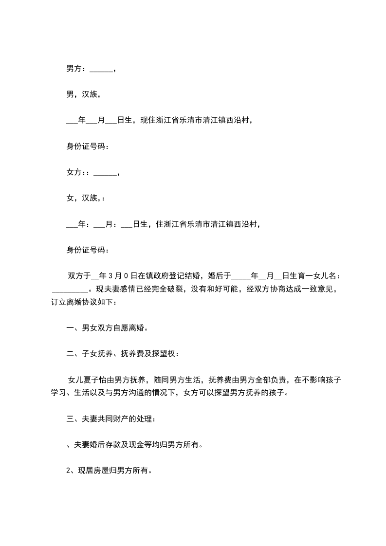 协议人:__________,女,____年____月____日出生,汉族,住____市____路____号。