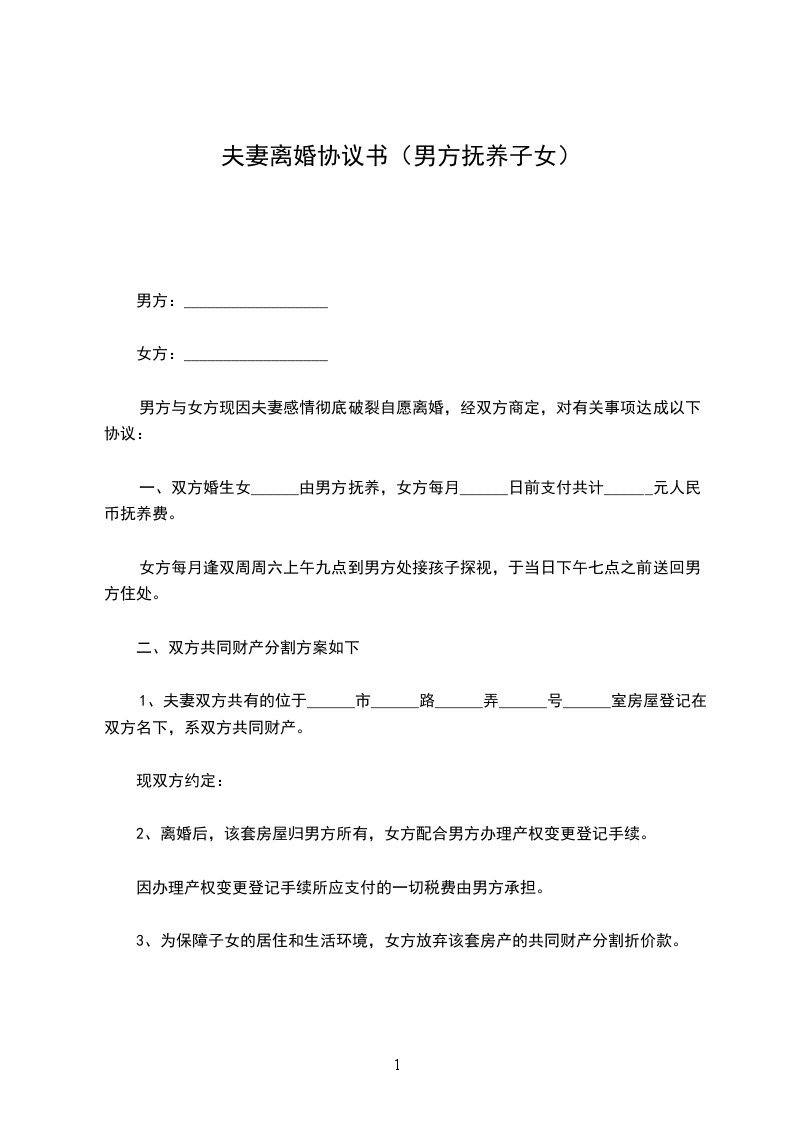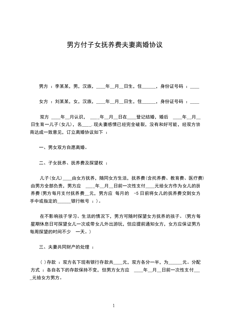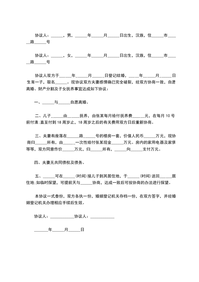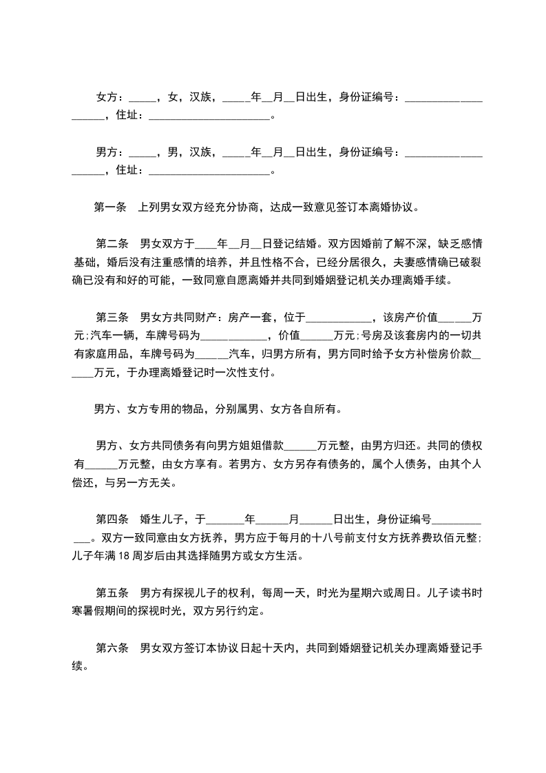 协议人:__________,男,____年____月____日出生,汉族,住____市____路____号。