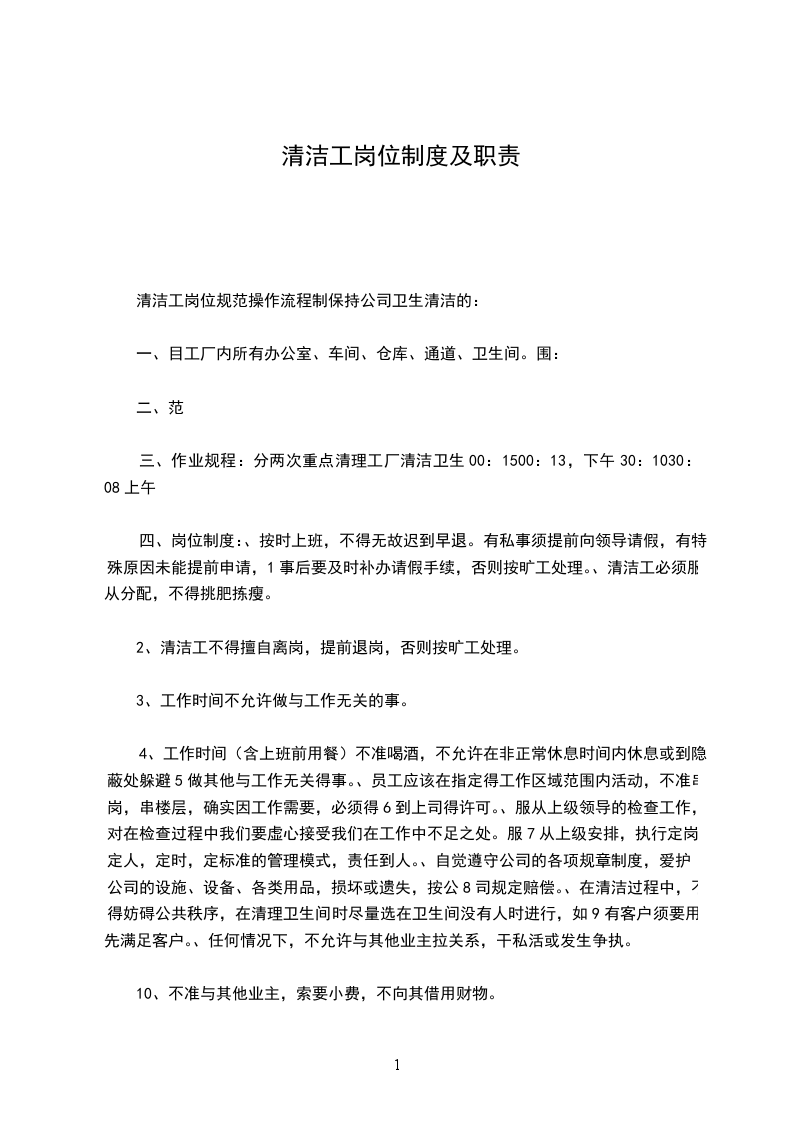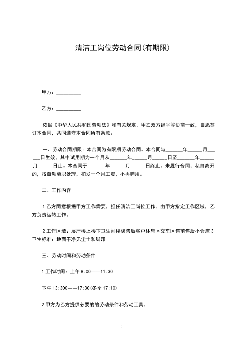 1乙方同意根据甲方工作需要,担任清洁工岗位工作。由甲方指定工作区域,乙方负责运转工作。