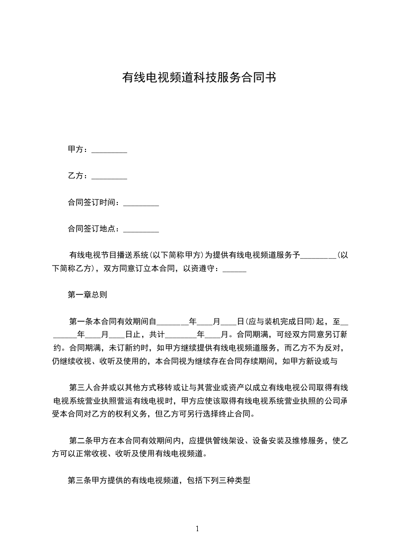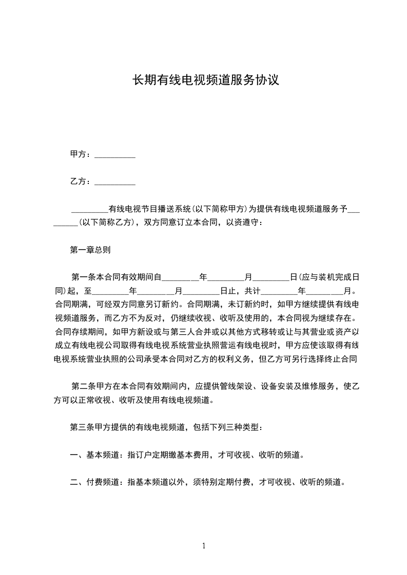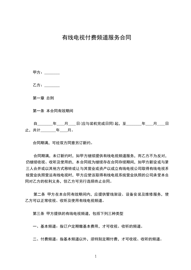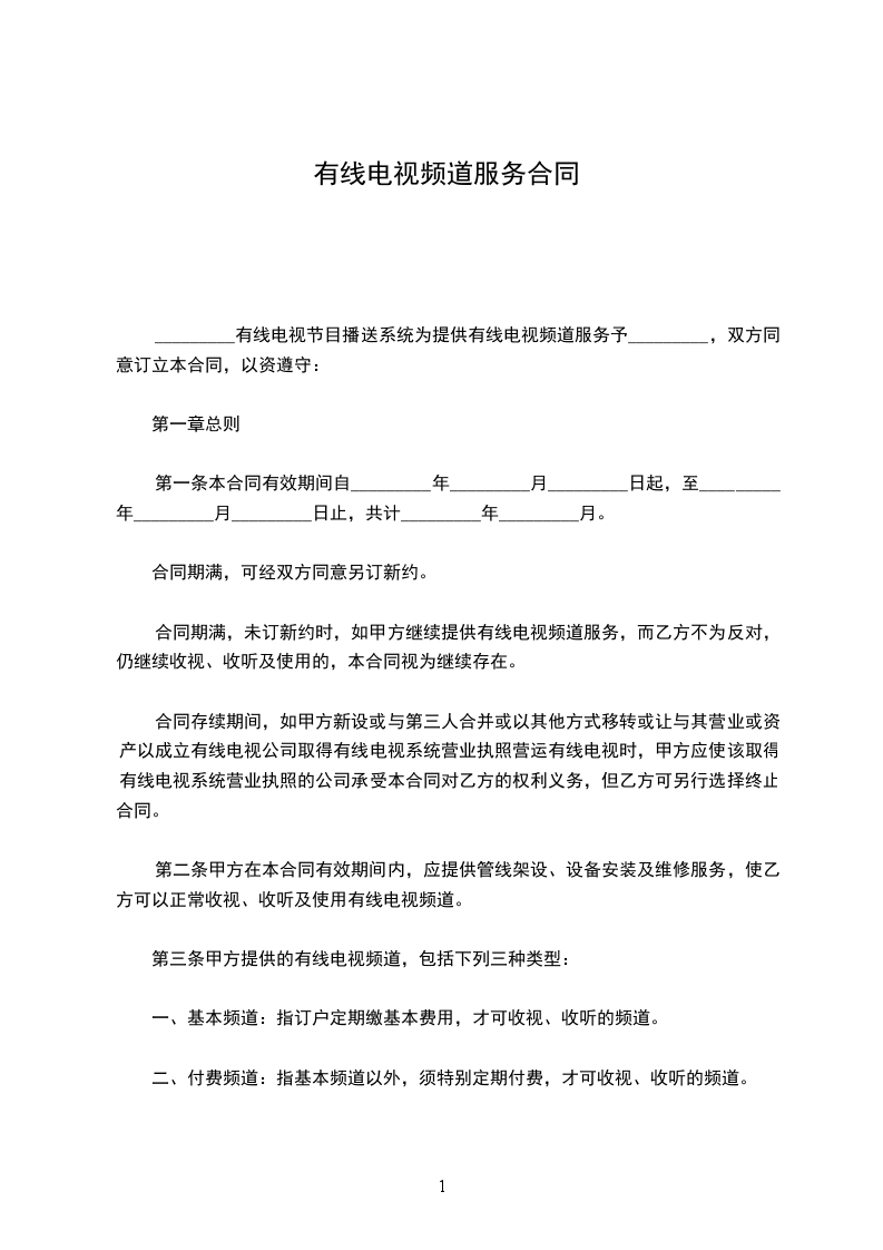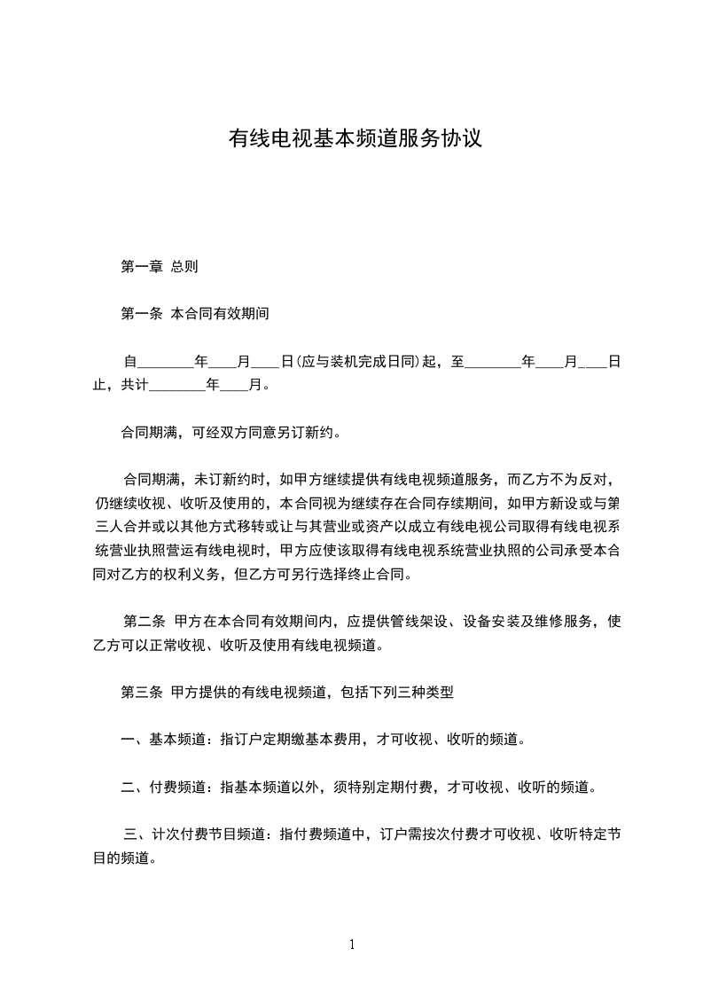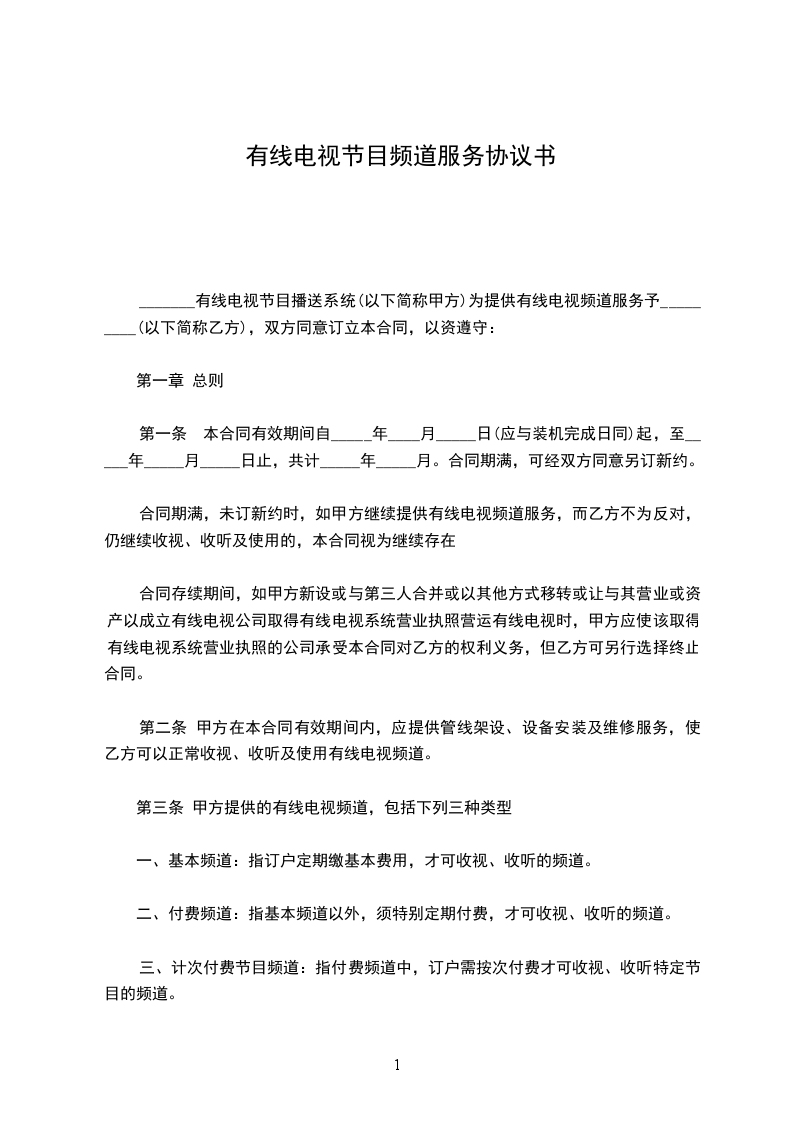 第三条 甲方提供的有线电视频道,包括下列三种类型