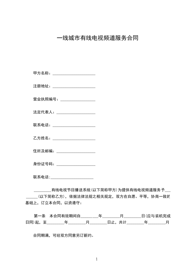 第二条 甲方在本合同有效期间内,应提供管线架设、设备安装及维修服务,使乙方可以正常收视、收听及使用有线电视频道。