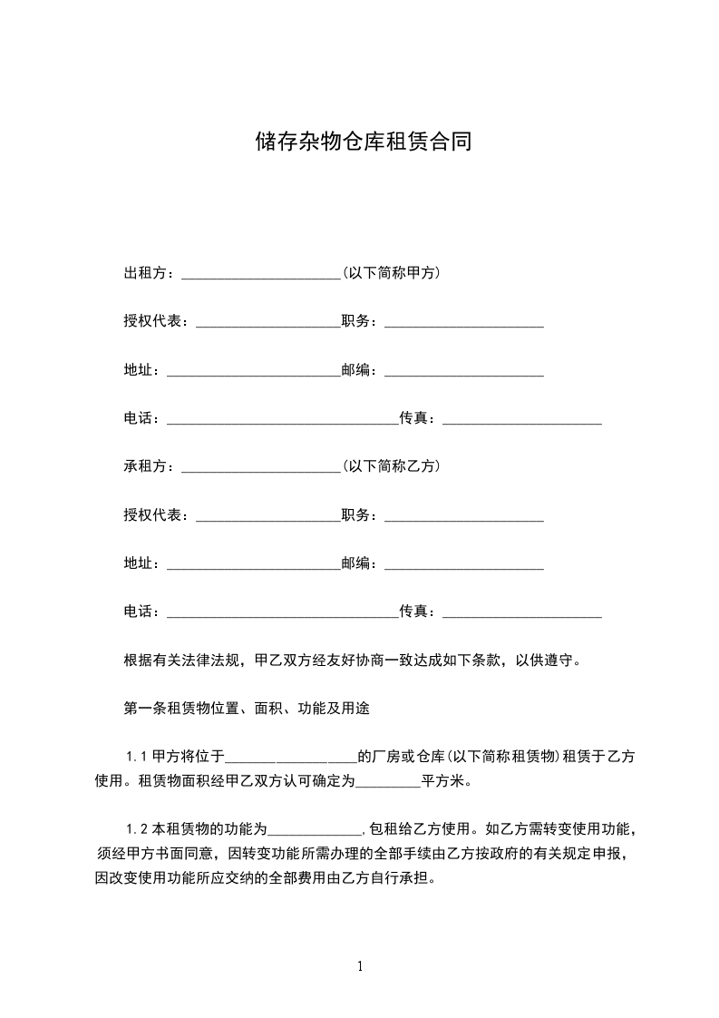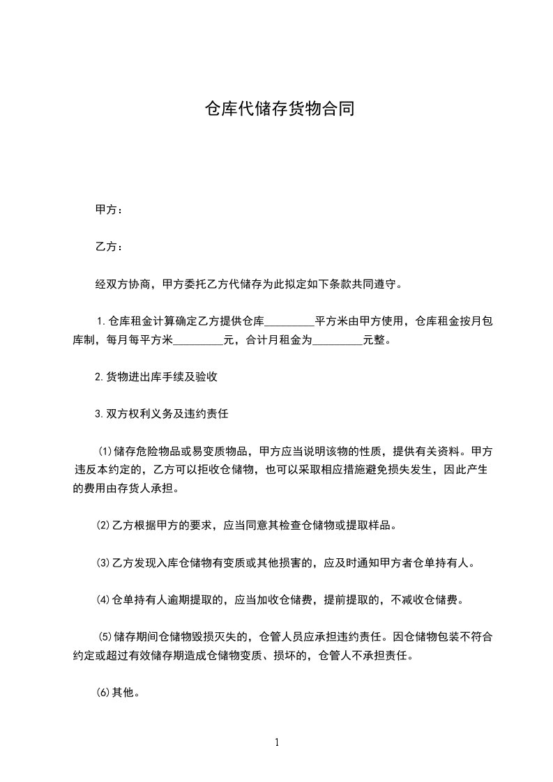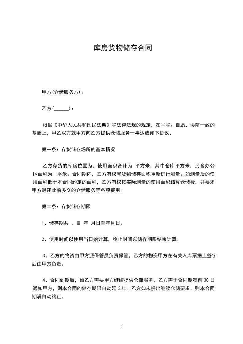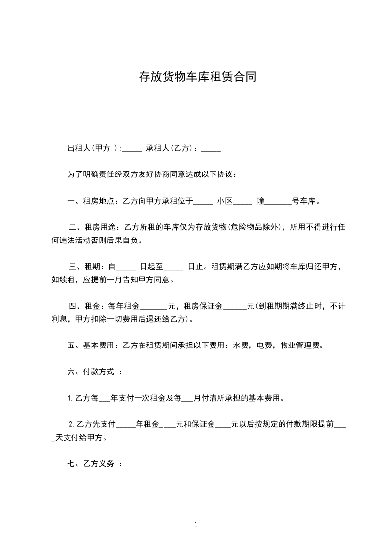第一条乙方自愿租用甲方位于_________ 车库作为储存货物使用(以下简称该车库),建筑面积约_________ 平方米。