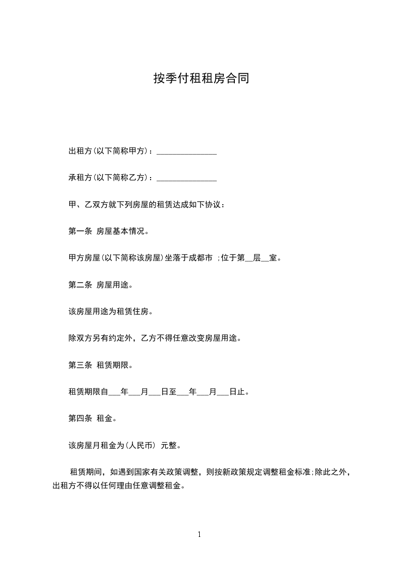 租赁期间,如遇到国家有关政策调整,则按新政策规定调整租金标准;除此之外,出租方不得以任何理由任意调整租金。