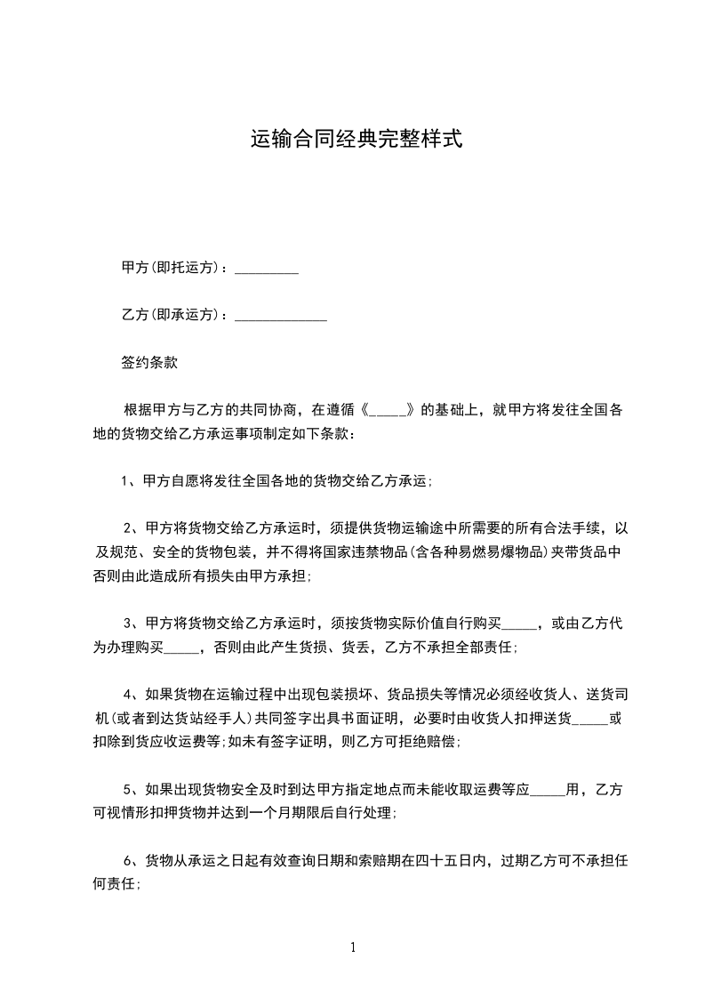 根据甲方与乙方的共同协商,在遵循《_____》的基础上,就甲方将发往全国各地的货物交给乙方承运事项制定如下条款: