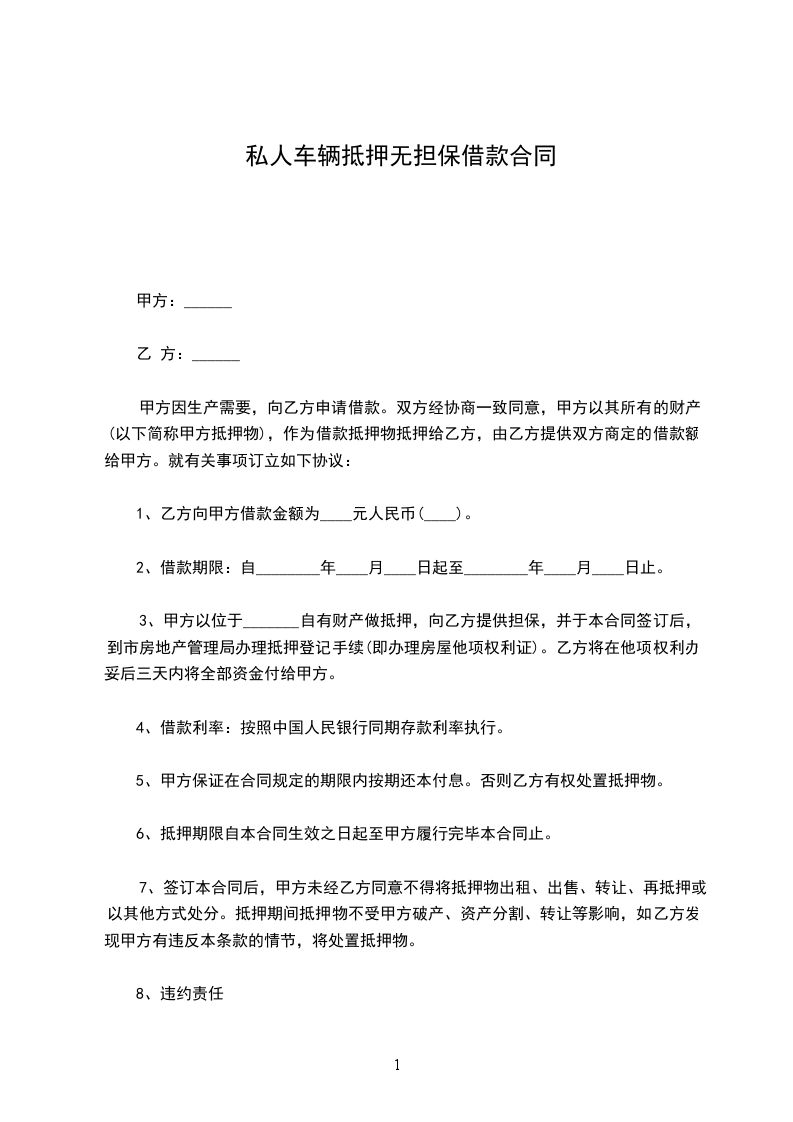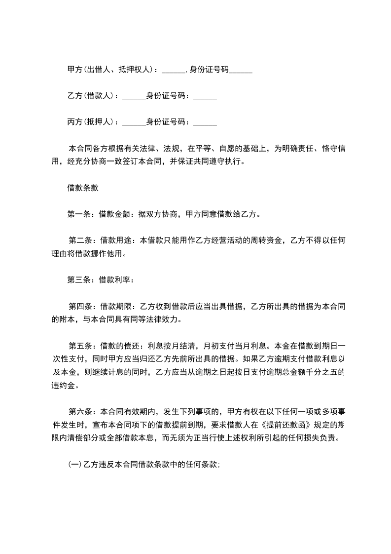 甲方(出借人、抵押权人):______,身份证号码______