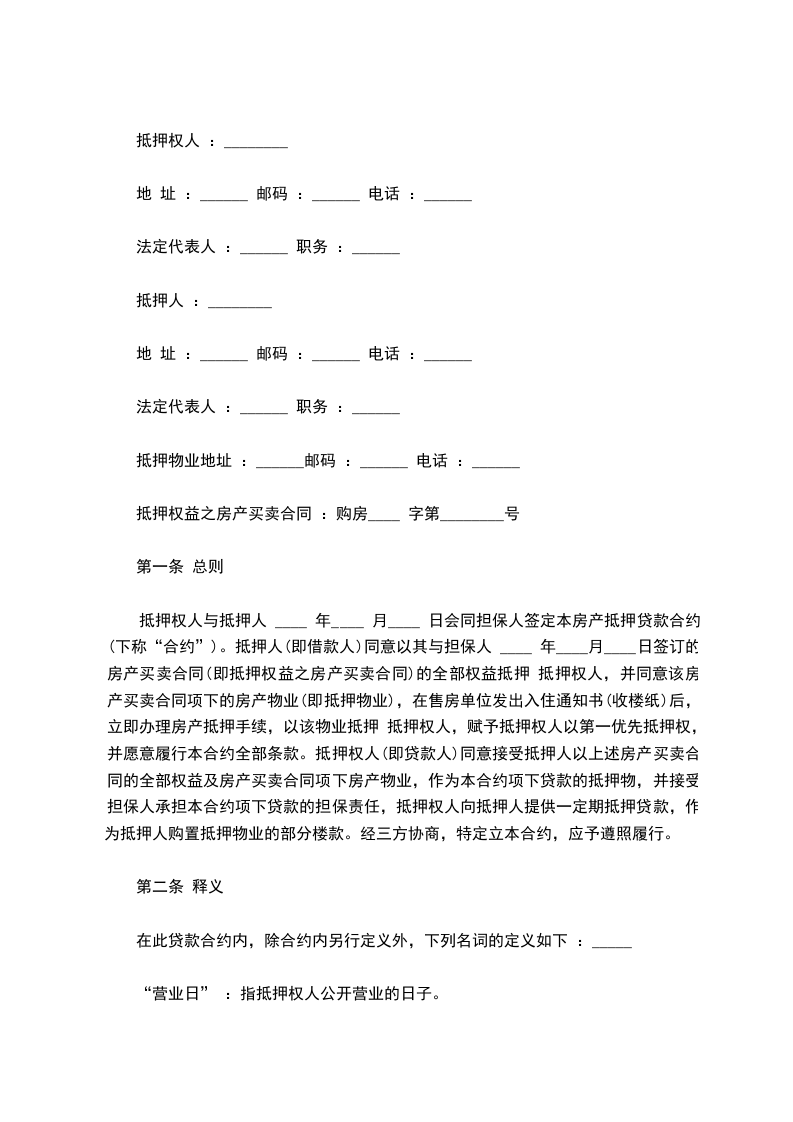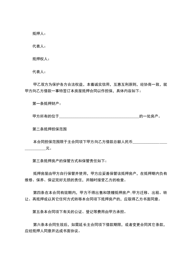 第七条:本合同的全部相关费用(包括抵押登记、公证等)均由乙方负责。抵押条款