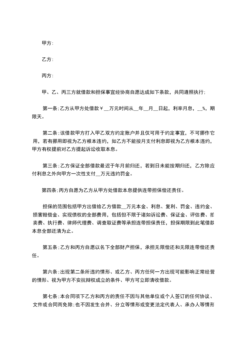 (三)乙方发生其他可能影响归还甲方借款本息的行为。