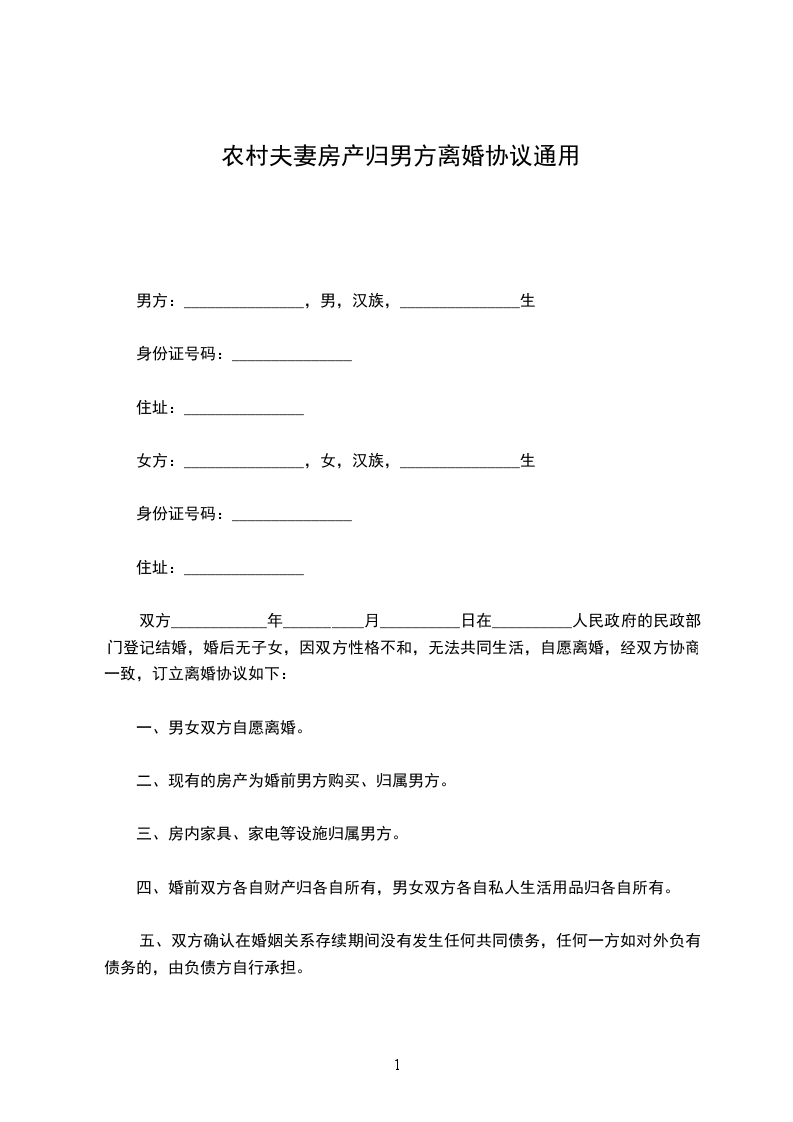 男方:______,汉族,______岁,____省____县____乡____村人,住____________。