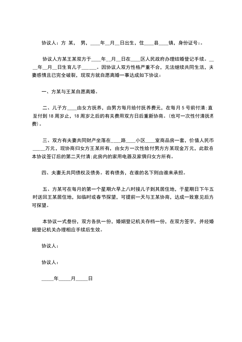 5、此协议一式三份,男女双方各持一份,交婚姻登记机关一份。自双方签字后生效。