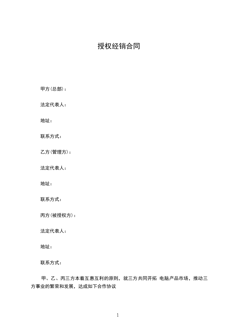 甲、乙、丙三方本着互惠互利的原则,就三方共同开拓 电脑产品市场,推动三方事业的繁荣和发展,达成如下合作协议