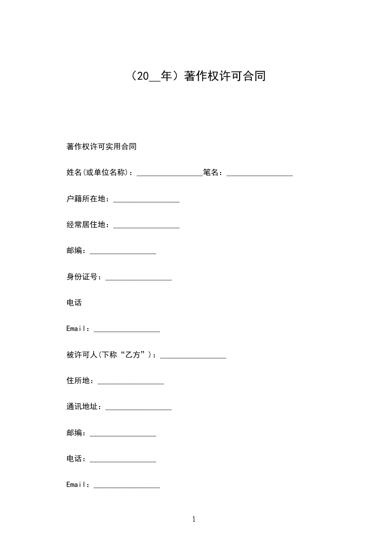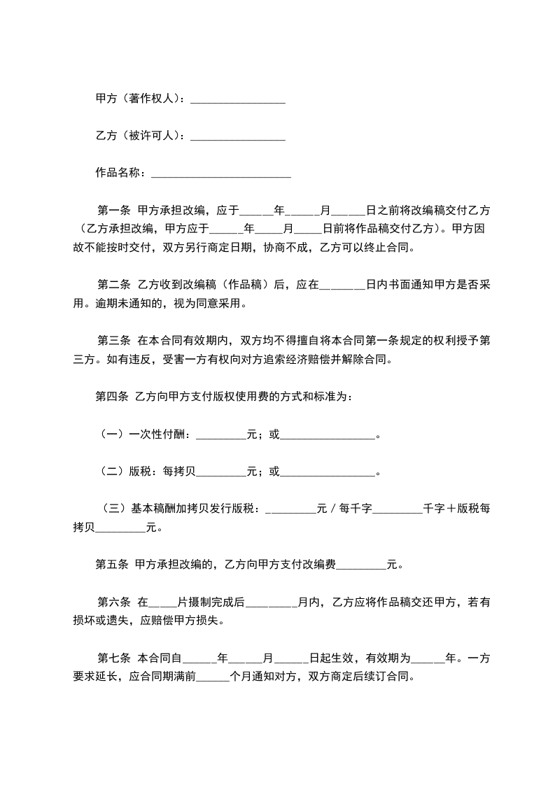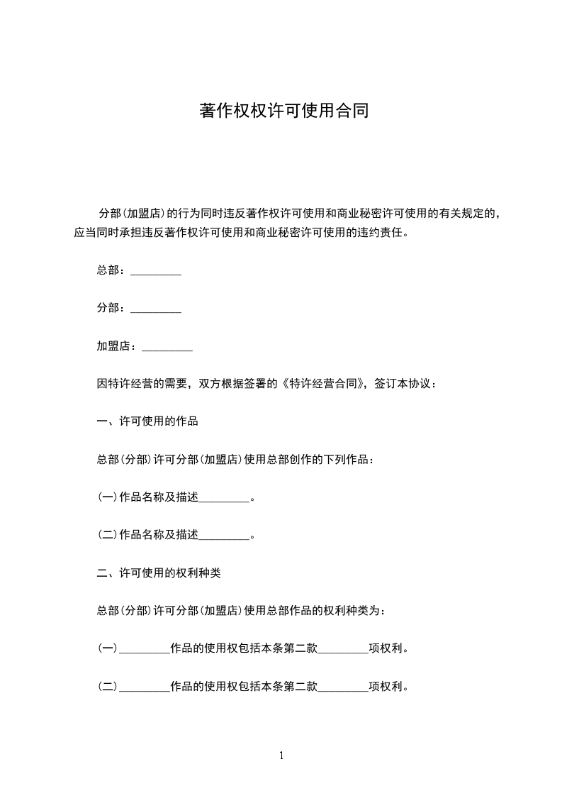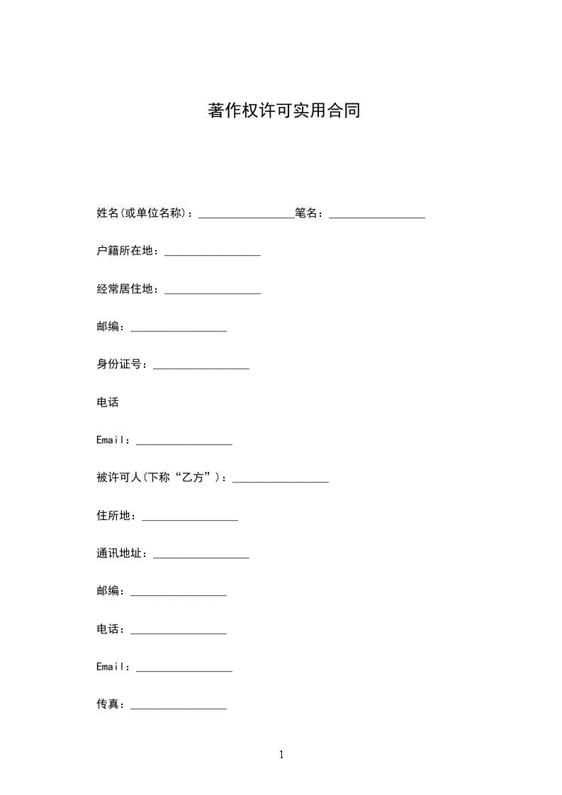 1.甲方同意向乙方无偿非专属授权使用书名为_________的著作(包括该著作的版式及装帧,以下简称本著作)
