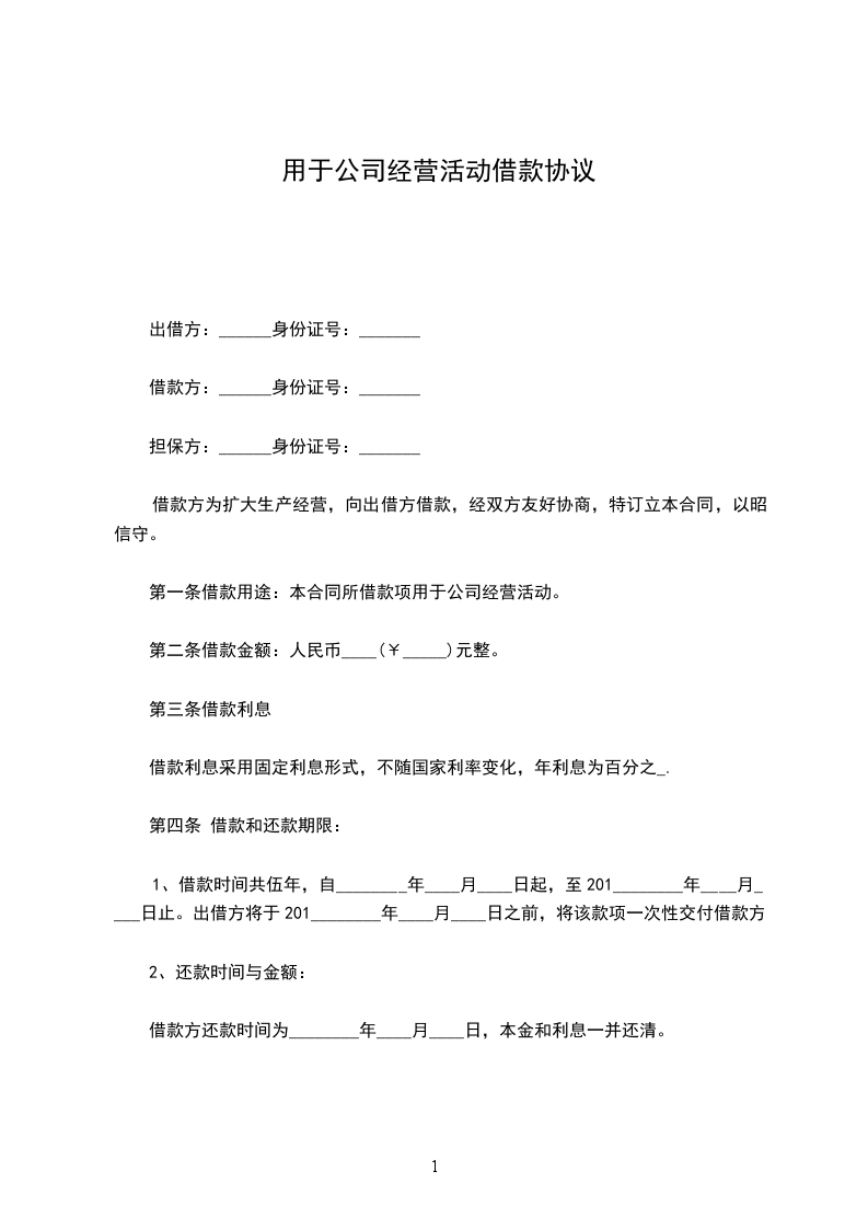 甲方通过本合同向乙方出借人民币_____万元整(小写:________万元),用于支持乙方的日常经营活动。借款期限个月,具体借款本息的清偿按照本合同第三条约定处理。