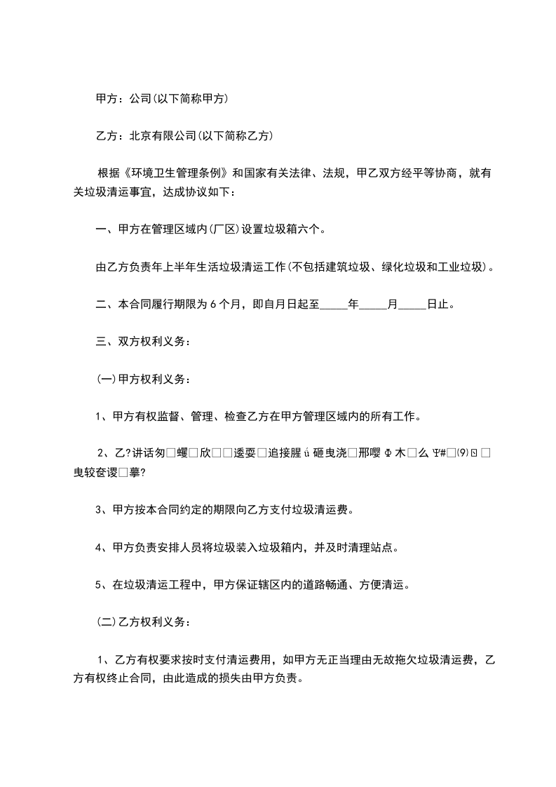 2、每月结算一次,上月费用于次月5日前结清;结算时由甲方出具书面收款单据。