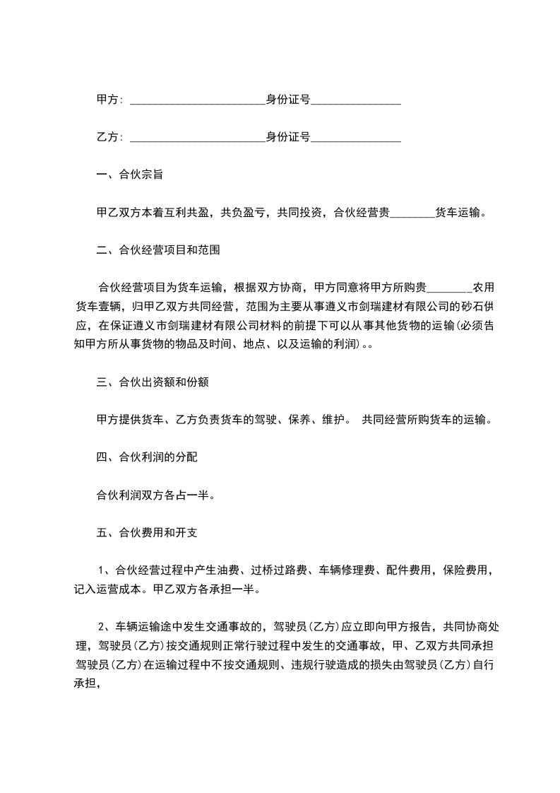 1、由甲方合伙合资经营远大货运站,所有财产折价为_____元正(_____元),占股权100%,现甲方愿意将其合营公司的股权_____%以人民币_____万元转让给乙方,乙方愿意受让;