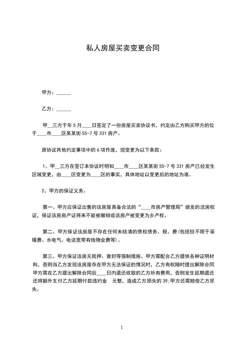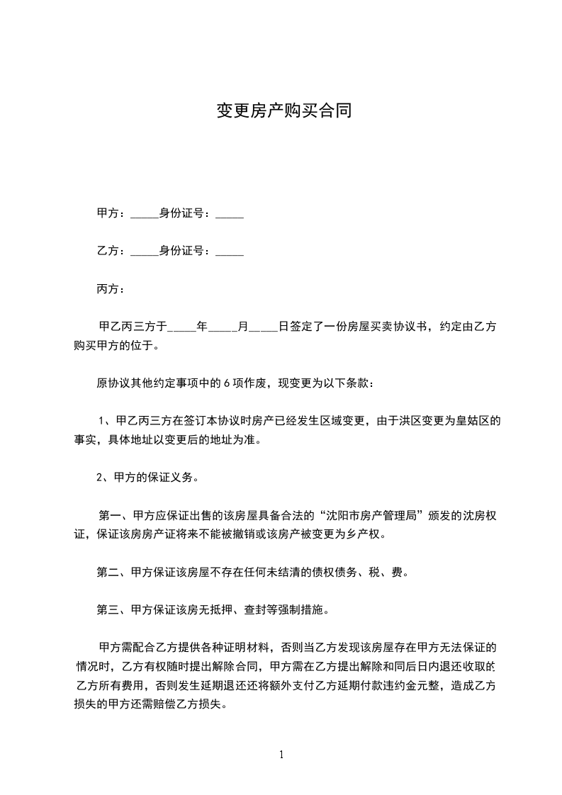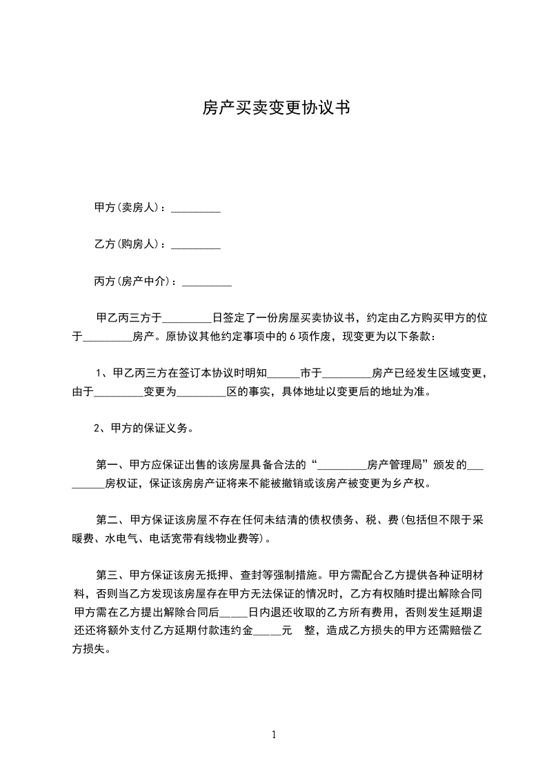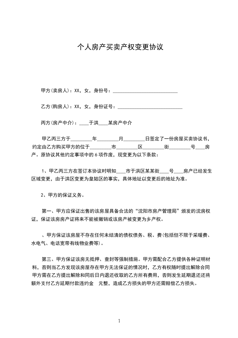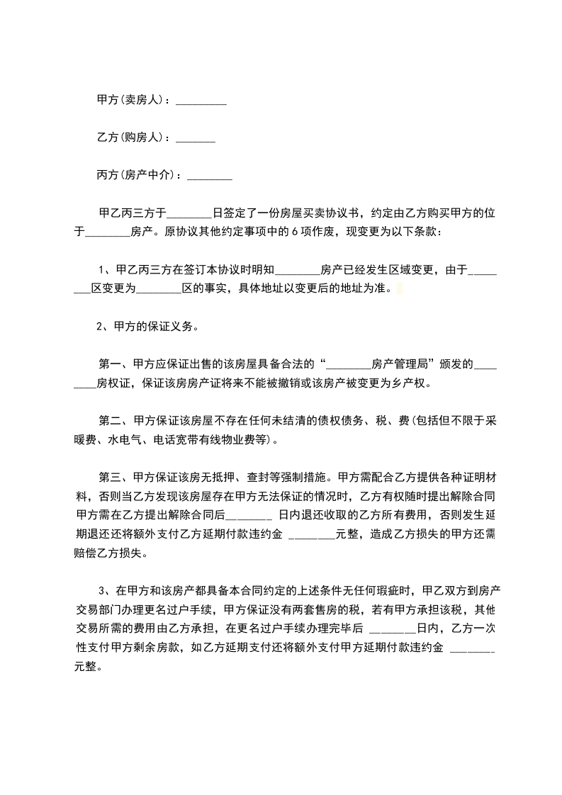 1、甲乙丙三方在签订本协议时明知______市于_________房产已经发生区域变更,由于_________变更为_________区的事实,具体地址以变更后的地址为准。