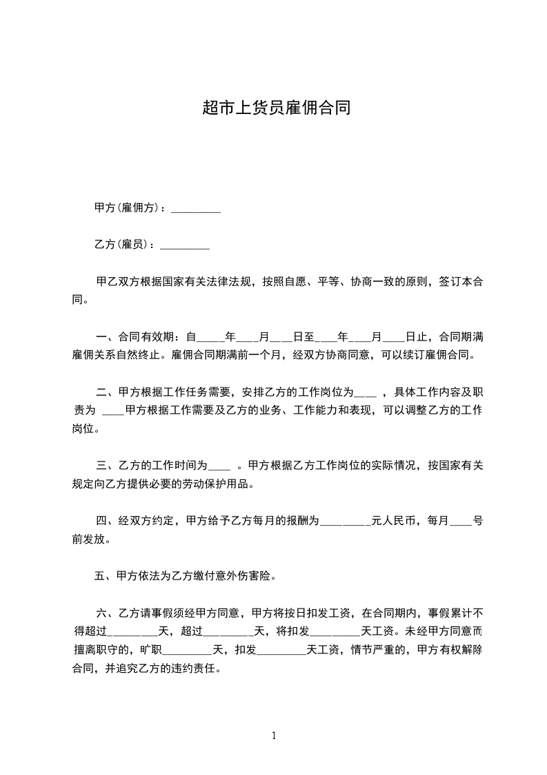 六、乙方请事假须经甲方同意,甲方将按日扣发工资,在合同期内,事假累计不得超过_________天,超过_________天,将扣发_________天工资。未经甲方同意而擅离职守的,旷职_________天,扣发_________天工资,情节严重的,甲方有权解除合同,并追究乙方的违约责任。
