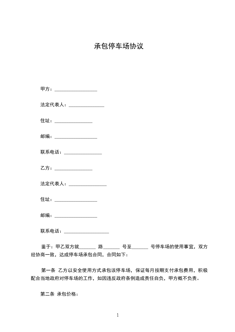 甲方同意将 路______、______号______大院停车场发包给乙方承包管理,经双方友好协商,签订本合同。