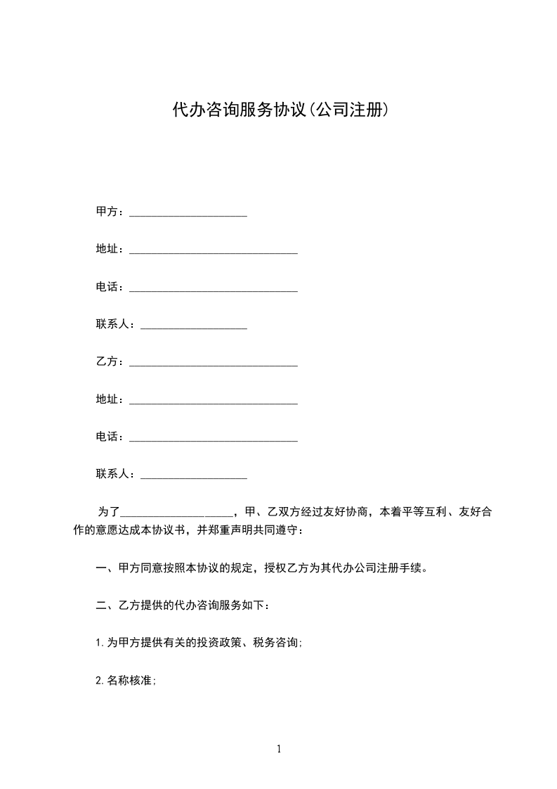一、甲方同意按照本协议的规定,授权乙方为其代办公司注册手续。