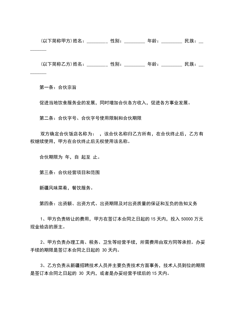 现有甲乙丙丁戊合股(合伙)开办一家调味品厂,全面实施三方共同投资、共同合作经营的决策,成立股份制企业。经5方合伙人平等协商,本着互利合作的原则,签订本协议,以供信守。