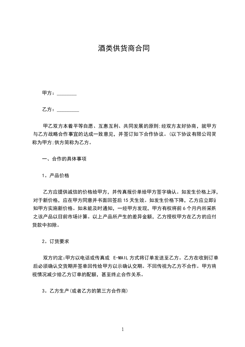 甲乙双方本着平等自愿、互惠互利、共同发展的原则;经双方友好协商,就甲方与乙方战略合作事宜的达成一致意见,并签订如下合作协议。(以下协议有限公司简称为甲方;供方简称为乙方。