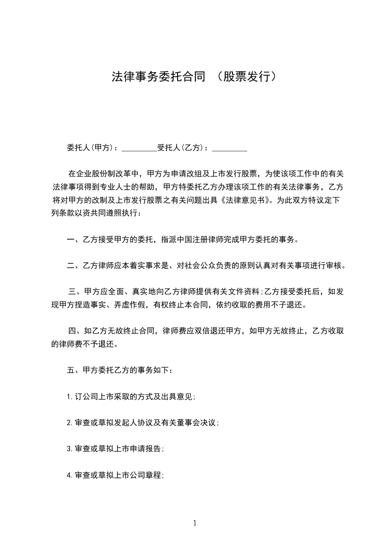 在企业股份制改革中,甲方为申请改组及上市发行股票,为使该项工作中的有关法律事项得到专业人士的帮助,甲方特委托乙方办理该项工作的有关法律事务,乙方将对甲方的改制及上市发行股票之有关问题出具《法律意见书》。为此双方特议定下列条款以资共同遵照执行: