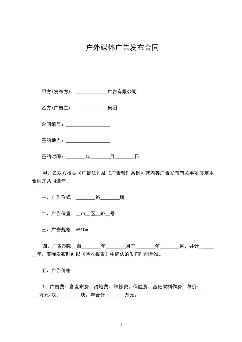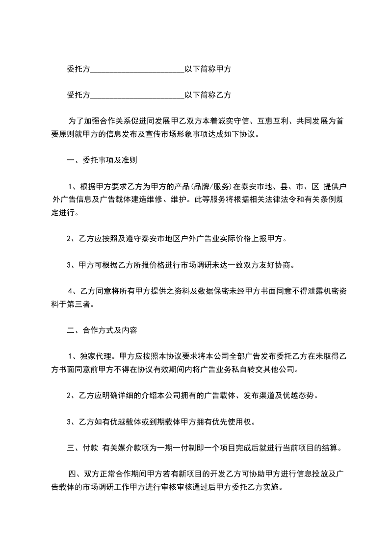 甲乙双方经友好协商,在平等互利的基础上就本协议项下的户外广告发布事宜达成如下协议,共同信守执行。