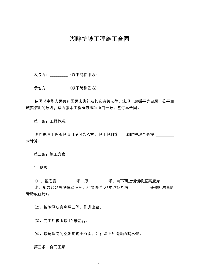 湖畔护坡工程承包项目发包给乙方,包工包料施工,湖畔护坡全长按 _________米计算。