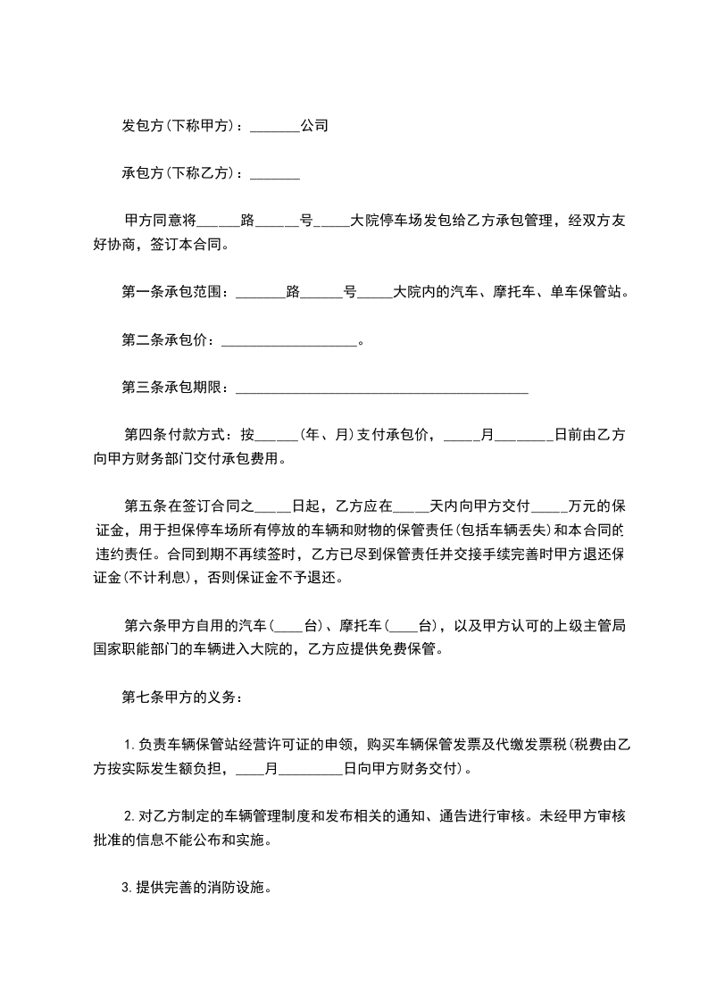 一、承包范围:天河路______、______号______大院内的汽车、摩托车、单车保管站。