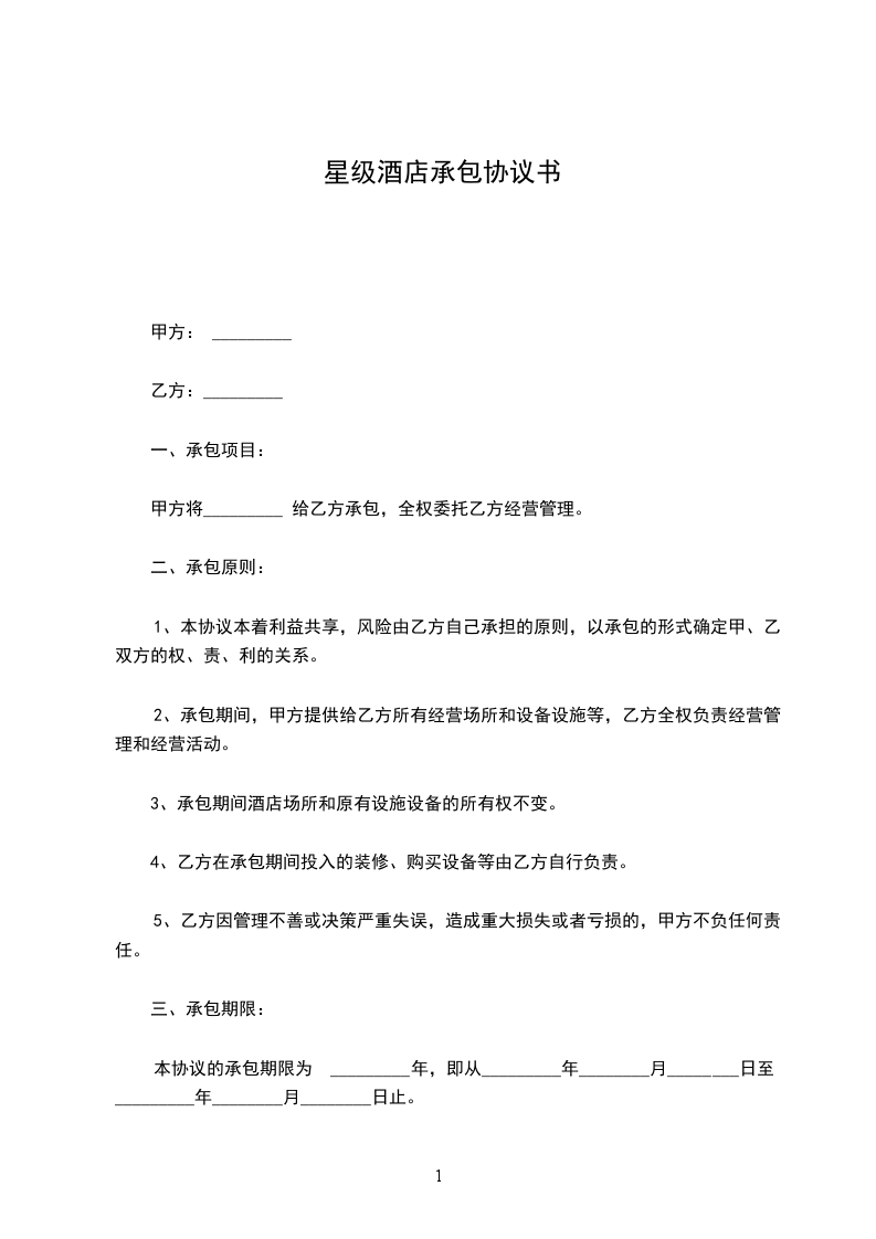 本协议的承包期限为 _________年,即从_________年________月________日至_________年________月________日止。