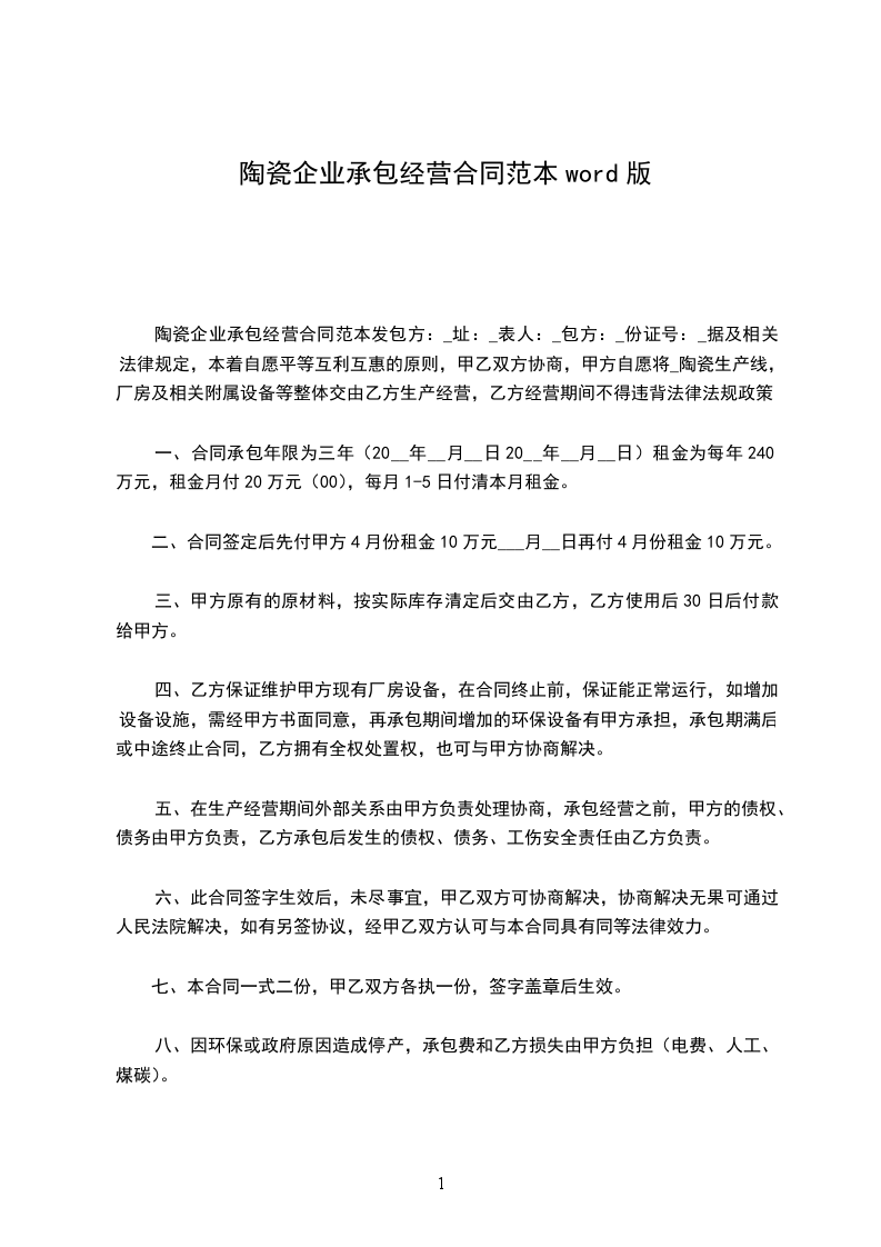 ________陶瓷店,经营地点为__________店面